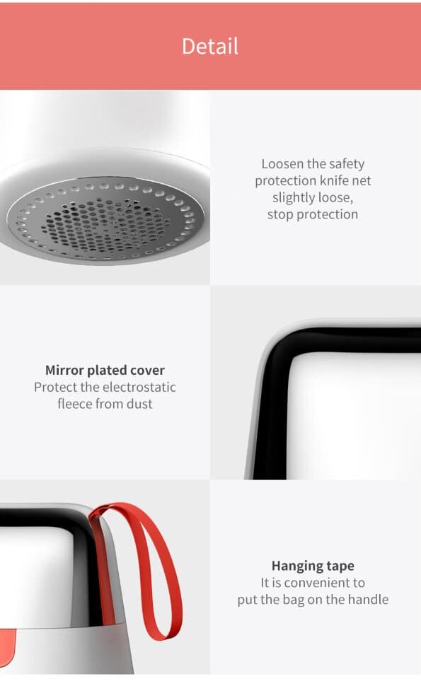 Это комплекс 2в1 для чистки одежды. Машинка эффективно удаляет катышки, делая ткань гладкой и нежной, а также имеет щетку под колпаком (альтернатива липкому ролику), которая позволит удалить волосы, мелкие нити, шерсть и прочее. Подходит для любого типа одежды. Питается устройство от собственного аккумулятора, зарядка которого производится от стандартного порта USB. Обладает небольшими размерами и может составить компанию в любой поездке. Для удобной переноски предусмотрен ремешок. Машинка оснащается производительным двигателем, скорость вращения которого достигает 7000 об./мин. Острый нож с тремя лезвиями отделен от одежды сеткой из нержавеющей стали. Она обеспечивает минимальный зазор, чтобы срезать даже самые небольшие катышки и при этом предотвращает случайное повреждение ткани. Блок с сеткой легко снимается и позволяет производить чистку лезвия, а также удаление отработанного материала. Чтобы получить доступ к щетке для удаления волос необходимо нажать кнопки, расположенные с двух сторон, и снять колпак.