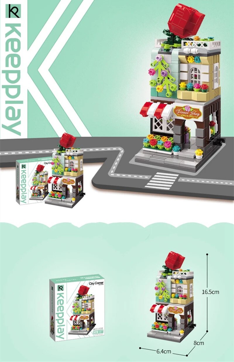 Qman Keeppley City Corner c0104 Red Rose Florist Mini Modular Speed Build