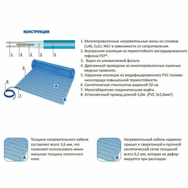 Приобрел теплый пол Grand Meyer мощностью 180 Вт. под керамогранит. Отлично прогревает напольное покрытие, очень доволен. На то оно и есть Европейское качество. Единственное из нареканий, теплый пол не клейкий, монтажник высказался по этому поводу, но сказал что очень хорошо что кабель пришит а не приклеен, т.к. продлевает срок службы теплого пола.