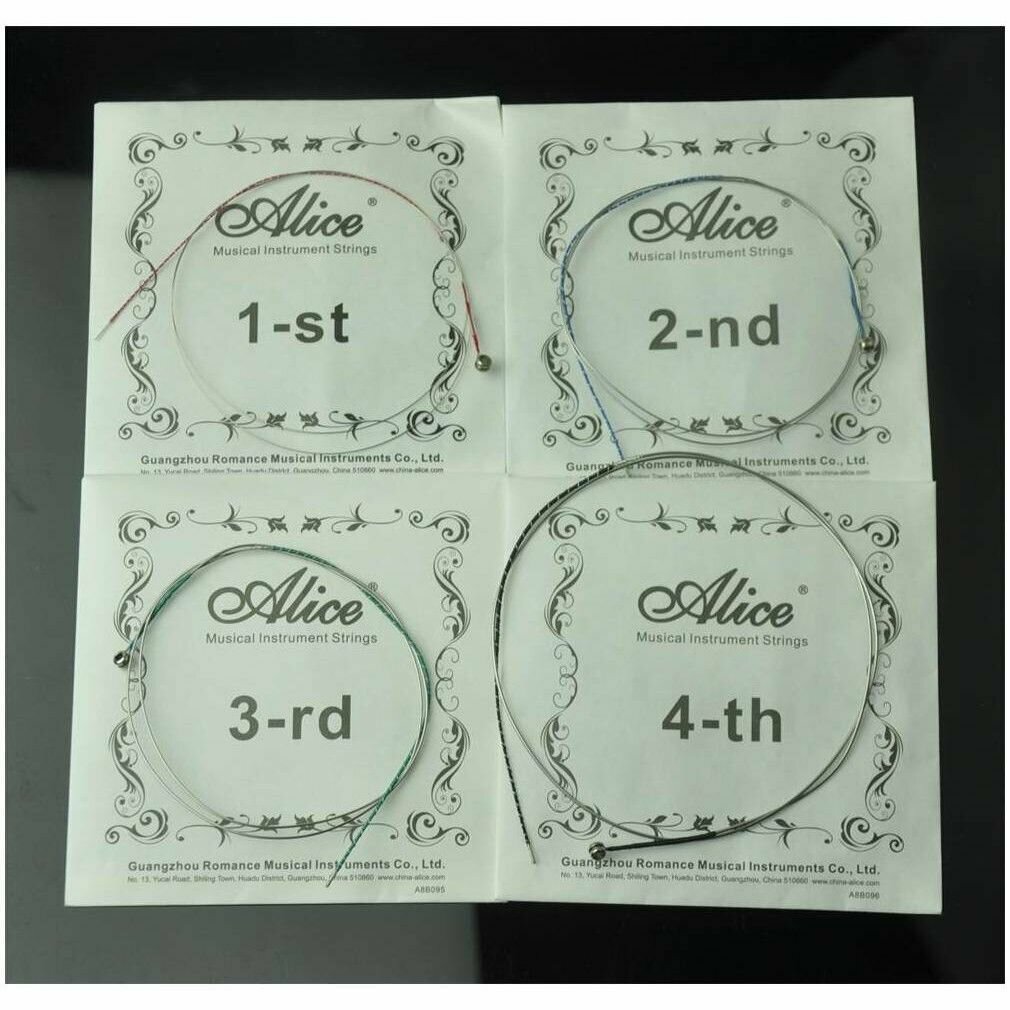 | Номер струны | первая (ми, никелированная-сталь), вторая (ля, сталь/алюминиево-магниевый сплав), третья (ре, сталь/алюминиево-магниевый сплав), четвертая (соль, сталь/алюминиево-магниевый сплав) |