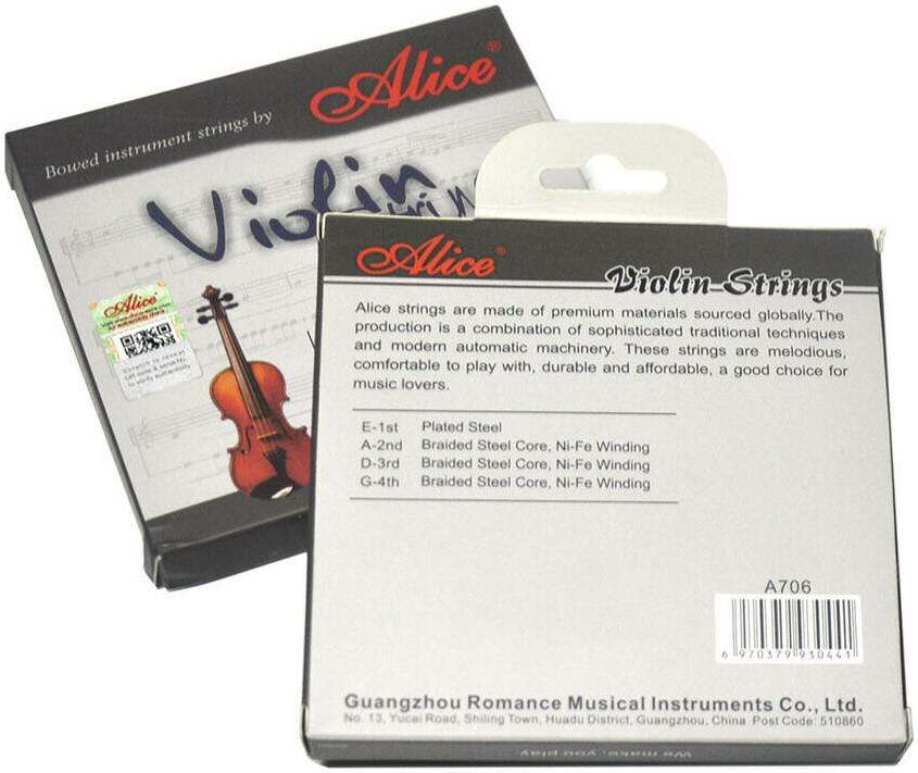 Комплект струн для скрипки ALICE Струны обладают ярким, чистым звучанием и равномерным натяжением по всей длине.Предназначены для скрипки 4/4 с длиной игровой части 13 дюймов (328 мм).Комплект подходит как для концертных выступлений так и для практических занятий. Технические характеристики: Комплект струн для скрипки размером 4/4 Количество струн: 4 шт. Натяжение: среднее (medium) Основа струн из скрученной стальной нити Первая струна: высокоуглеродистая нержавеющая сталь Остальные струны: оплетка из сплава Ni-Fe Никелированные шарики на концах струн Упаковка: картонная коробка, пластиковый пакет Производство: Китай. Размер в упаковке: 0,01 x 0,12 x 0,14 мВес в упаковке: 0,030 кг