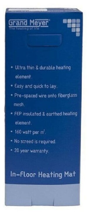 Приобрел теплый пол Grand Meyer мощностью 180 Вт. под керамогранит. Отлично прогревает напольное покрытие, очень доволен. На то оно и есть Европейское качество. Единственное из нареканий, теплый пол не клейкий, монтажник высказался по этому поводу, но сказал что очень хорошо что кабель пришит а не приклеен, т.к. продлевает срок службы теплого пола.