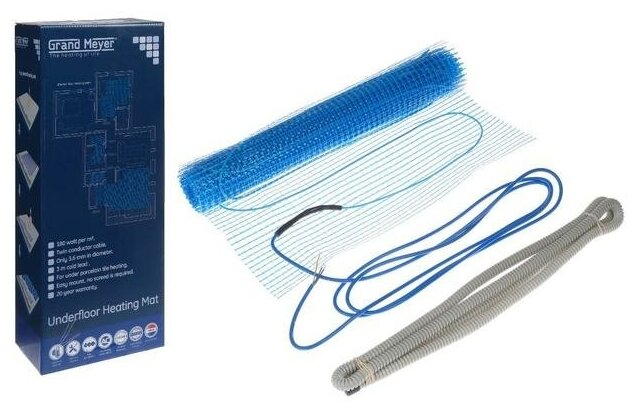 Приобрел теплый пол Grand Meyer мощностью 180 Вт. под керамогранит. Отлично прогревает напольное покрытие, очень доволен. На то оно и есть Европейское качество. Единственное из нареканий, теплый пол не клейкий, монтажник высказался по этому поводу, но сказал что очень хорошо что кабель пришит а не приклеен, т.к. продлевает срок службы теплого пола.