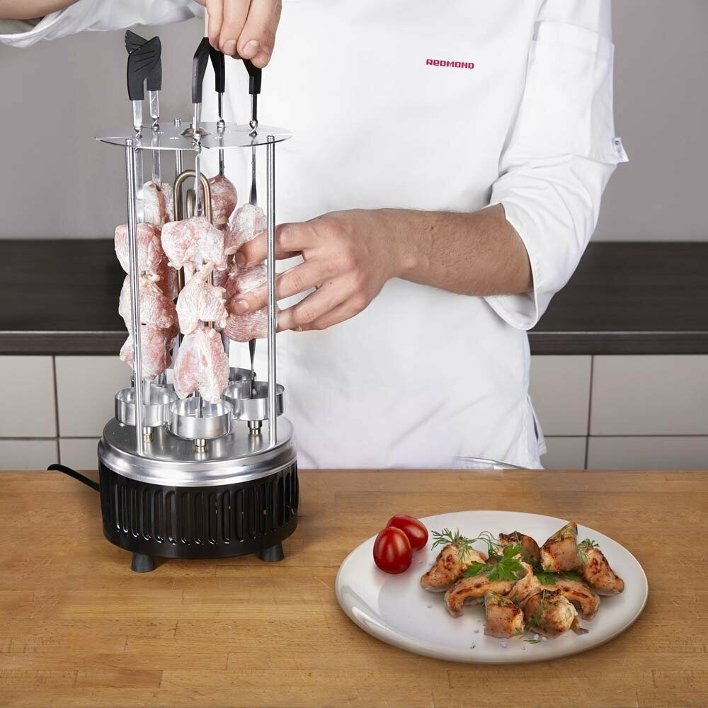 Электрошашлычница REDMOND позволит насладиться вкусным шашлыком в любое время года и в любую погоду. Конструкция устройства особой цилиндрической формы имеет продуманную систему вращения равномерной прожарки. REDMOND оснащена системой безопасности - функция автоотключения при падении и эргономичную ручку в форме кольца для удобного и безопасного приготовления. Прибор можно легко и быстро очистить.