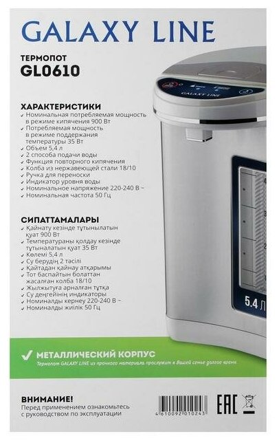 Термопот GALAXY LINE GL0610 - это универсальный прибор для нагрева воды до нужной температуры и удержания ее температуры на протяжении длительного времени.