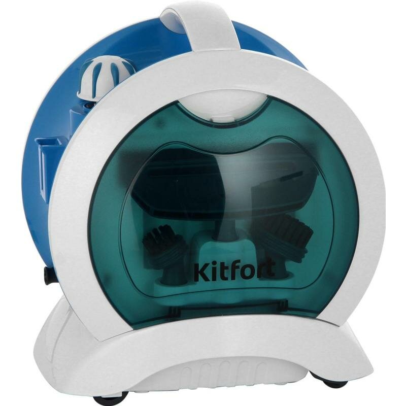 Хочу поделиться отзывом о пароочистителе Kitfort, который появился в моём доме. Изначально я его покупала для того, чтобы обрабатывать мягкую мебель от пылевого клеща (который живет в абсолютно любом текстиле, но не виден глазу). Но узнав все возможности пароочистителя, он заметно облегчил мою жизнь и отмыл всю грязь в квартире. Пароочиститель шарообразной формы бело-синего цвета. Внутрь вмещается 700 мл воды, что позволяет работать около 30 минут. Причём всё это время можно менять насадки для выполнения различной работы по дому - чистить стёкла, отпаривать, мыть полы. Длина шнура около 5 метров, поэтому можно работать в разных углах комнаты, не отключая его от сети. Мощность я выбирала высокую 1500 Вт. В целом мне хватает. Очень сильно прикипевшую накипь он, конечно, не собьёт в одно мгновение. Нужно будет очень долго держать струю пара. В комплекте идут целых 7 насадок, да ещё и переходники к ним, 2 держателя шланга, емкость для легкого заливания воды и воронка.