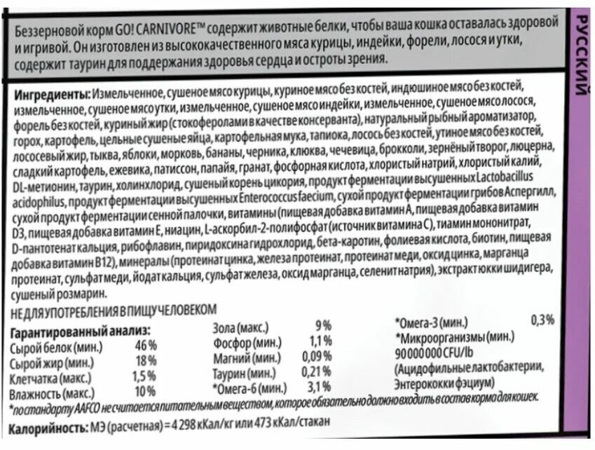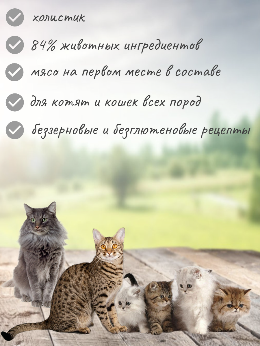 Некоторые кошки определенно мясоеды, что говорит об их хищной природе. Этот беззерновой рецепт богат белками, обеспечивает полноценное и сбалансированное питание, чтобы помочь вашей кошке оставаться здоровой и сохранять отличную физическую форму.