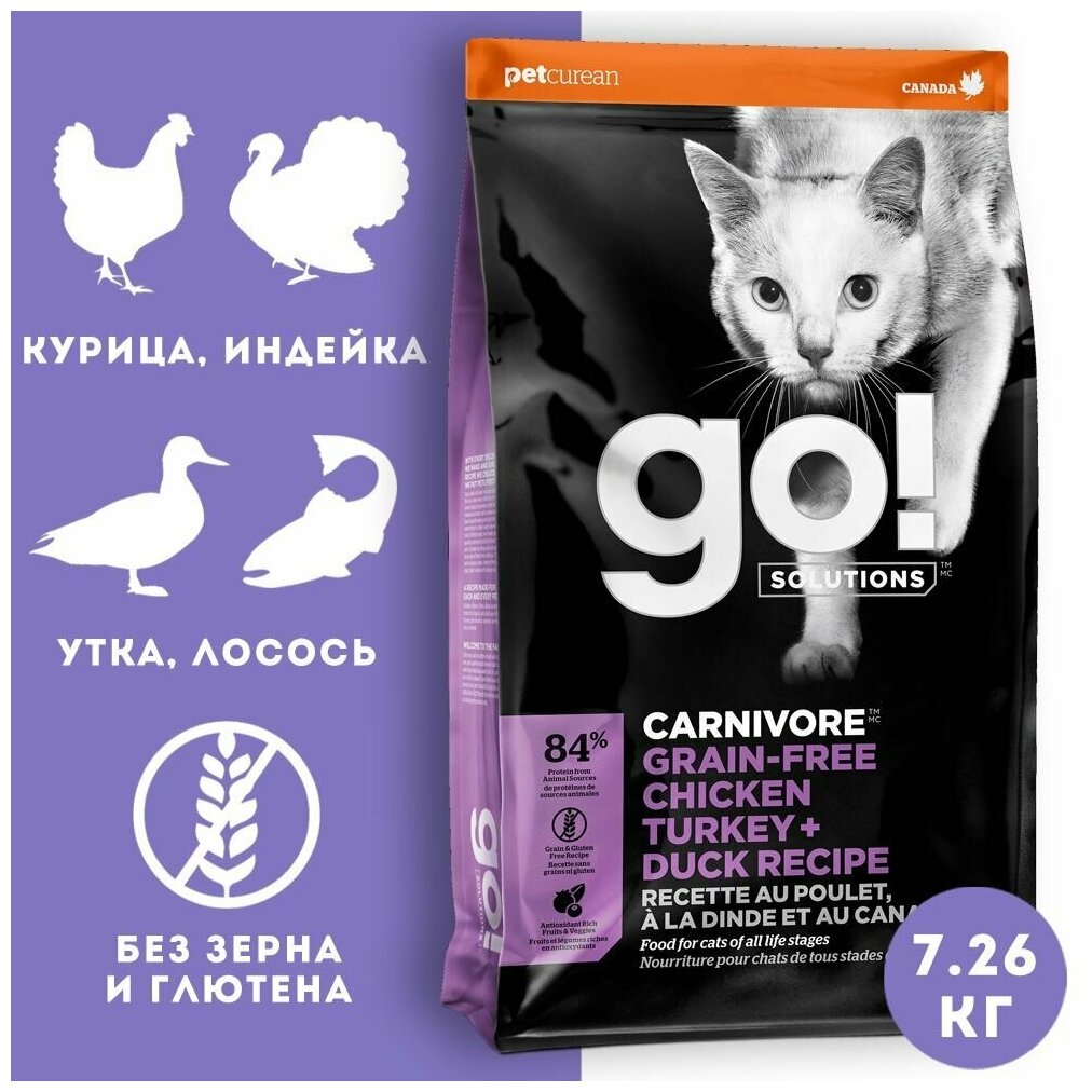 Сухой корм для кошек Go! Carnivore GF Chicken Turkey + Duck Recipe с 4 видами мяса 136 кг