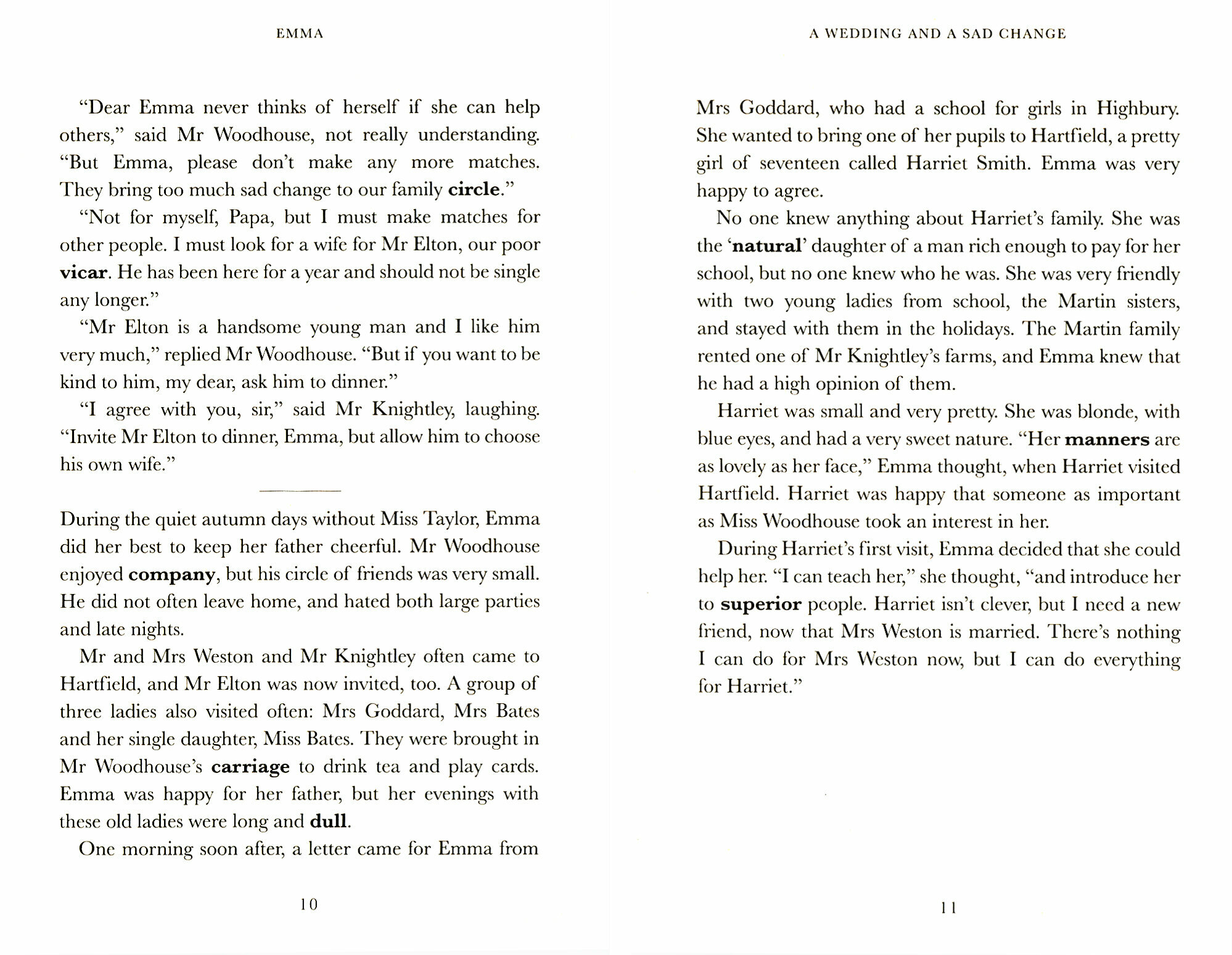 Emma Woodhouse is beautiful, clever and rich, and she has everything she wants. She does not want a husband for herself, but she loves match-making for her friends. But is Emma really as clever as she thinks? And what will she do when things start to go wrong?
