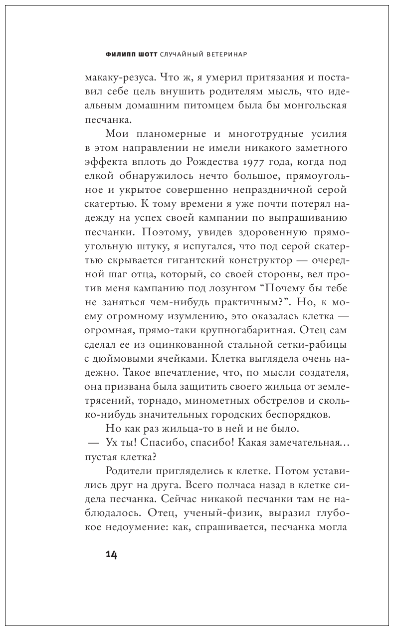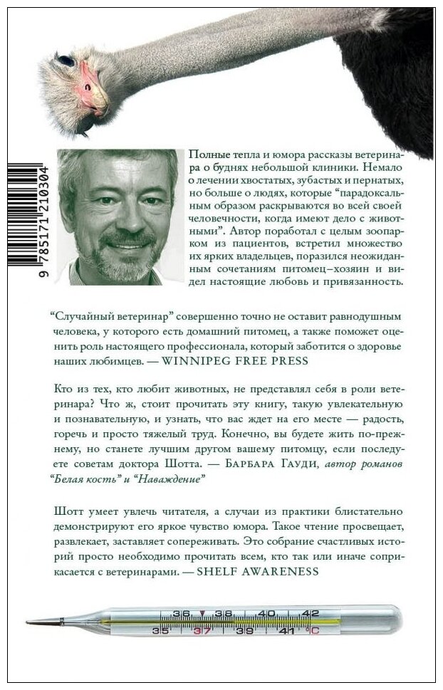 Здесь и личная история доктора Шотта, ставшего ветеринаром по счастливой случайности, но никогда не пожалевшего об этом пути. Всем, кто ежедневно заботится о своих животных, будут полезны практические советы по уходу за ними - доктор щедро и доходчиво делится своими знаниями.