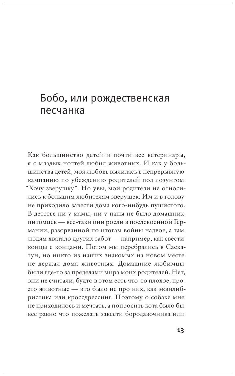 Полные тепла и юмора рассказы ветеринара о буднях небольшой клиники. Это истории не только о лечении хвостатых, зубастых и пернатых, но и о людях, которые "парадоксальным образом раскрываются во всей своей человечности, когда имеют дело с животными". Автор - опытный врач - за долгую практику поработал с целым зоопарком из пациентов, встретил множество ярких и интересных их владельцев, поражался неожиданным сочетаниям питомец-хозяин и видел примеры настоящей любви и привязанности.
