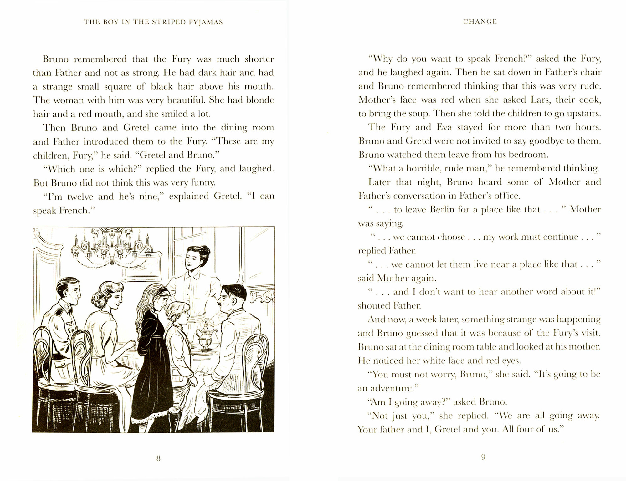 В переводе романа утеряны некоторые важные детали, например, Фюрер для главного героя Бруно вовсе не Фюрер - он furry (злой). И очень много таких важных элементов было утрачено, а они очень важны для составления полной картины мировоззрения Бруно. Поэтому однозначно советую поклонникам Джона Бойна.