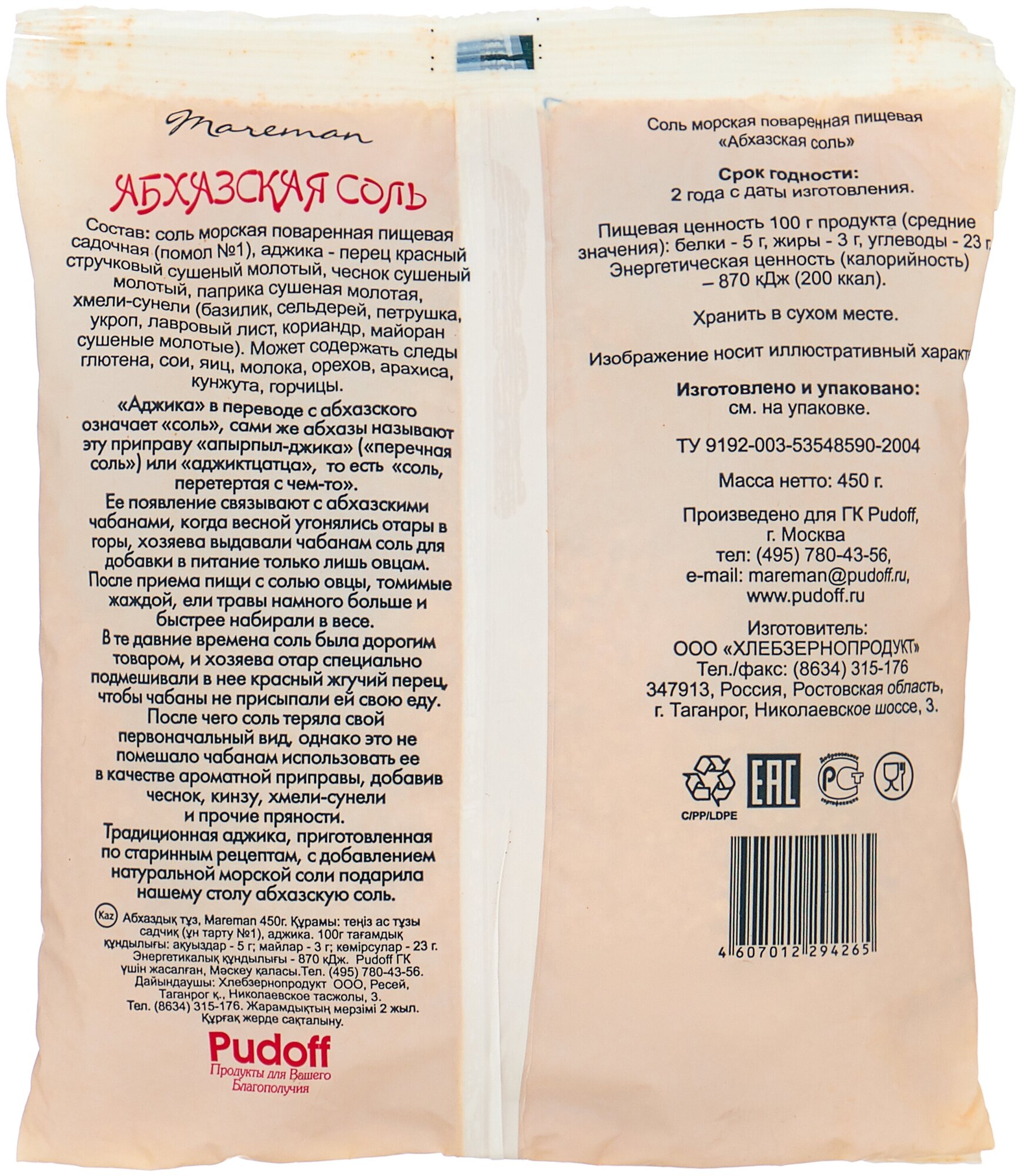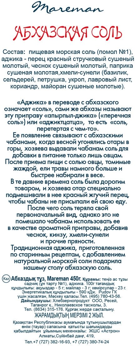 Соль Mareman Абхазская 450г Хлебзернопродукт
