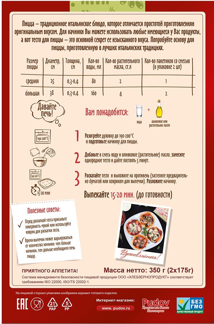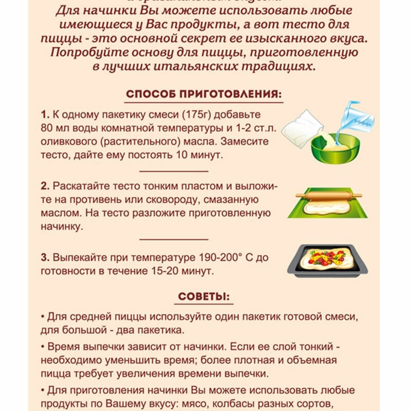 Натуральная морская пищевая соль. Пицца - традиционное итальянское блюдо, которое отличается простотой приготовления и оригинальным вкусом. Для начинки Вы можете использовать любые имеющиеся у Вас продукты, а вот тесто для пиццы - это основной секрет ее изысканного вкуса. Попробуйте основу для пиццы, приготовленную в лучших итальянских традициях.