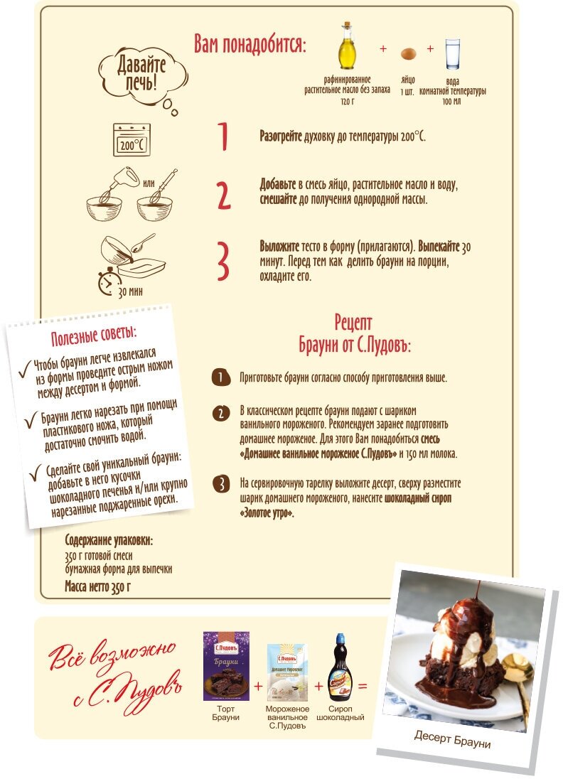 Смесь для выпечки С.Пудовъ Брауни 350г Хлебзернопродукт