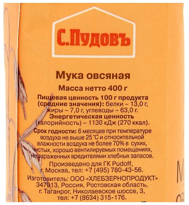 Сервис сравнения цен СкидкаГИД предлагает сравнить цены на товар «Мука С.Пудовъ Овсяная 400г Хлебзернопродукт»