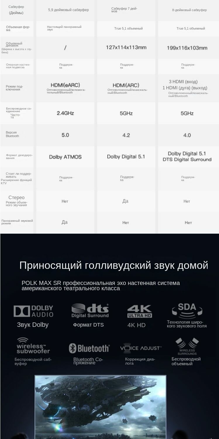 | Система Polk Audio MagniFi Max SR | саундбар, беспроводный сабвуфер и два беспроводных сателлита SR1 (тыловые спикеры) |