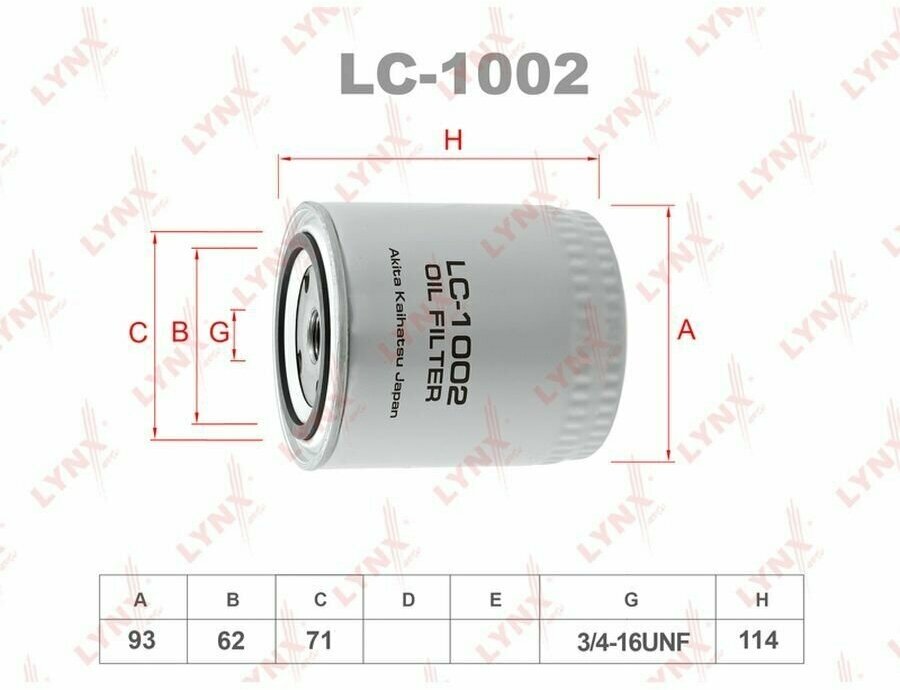 Масляный фильтр LYNXauto LC-1002