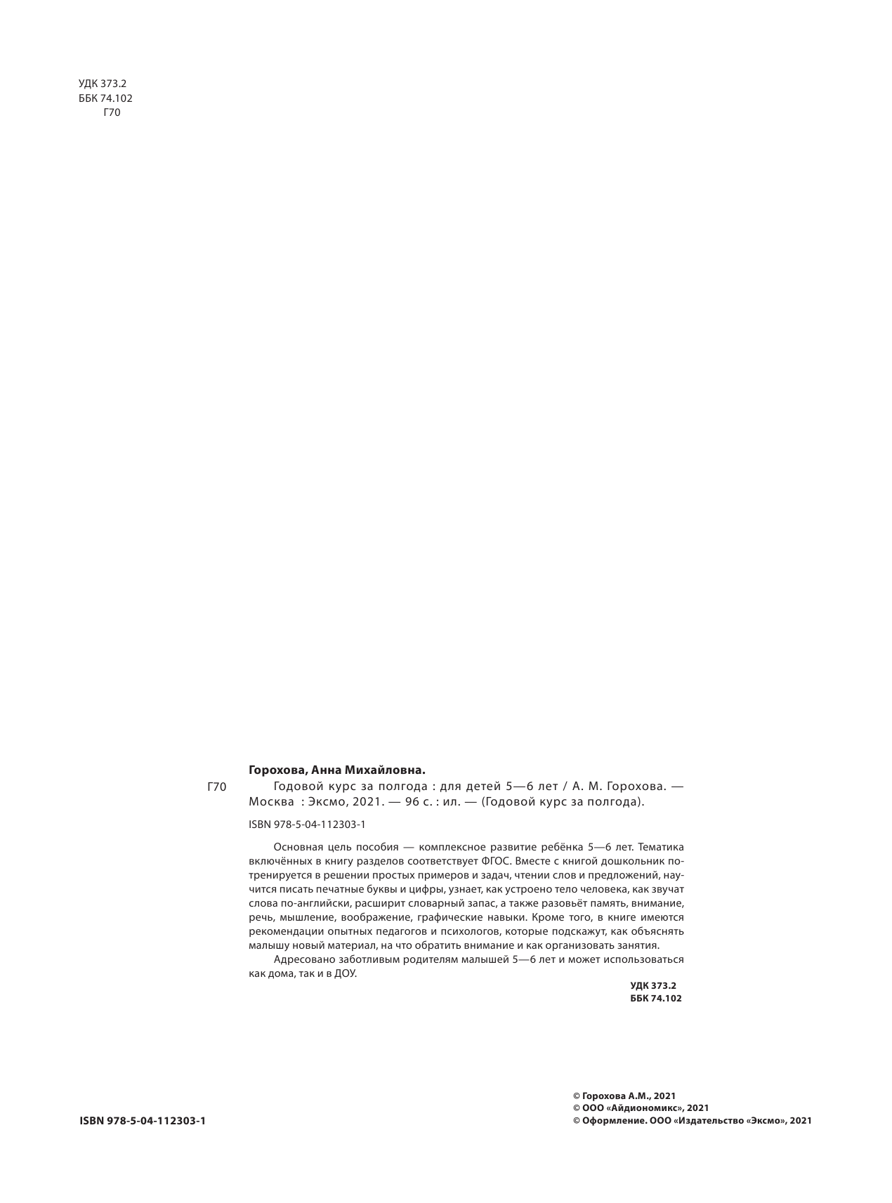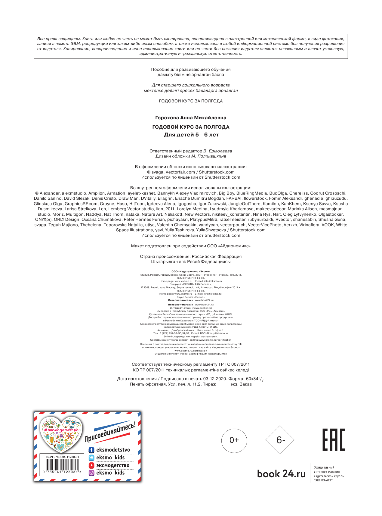 Годовой курс за полгода. Для детей 5-6 лет (Горохова Анна Михайловна); ООО "Издательство "Эксмо", 2021