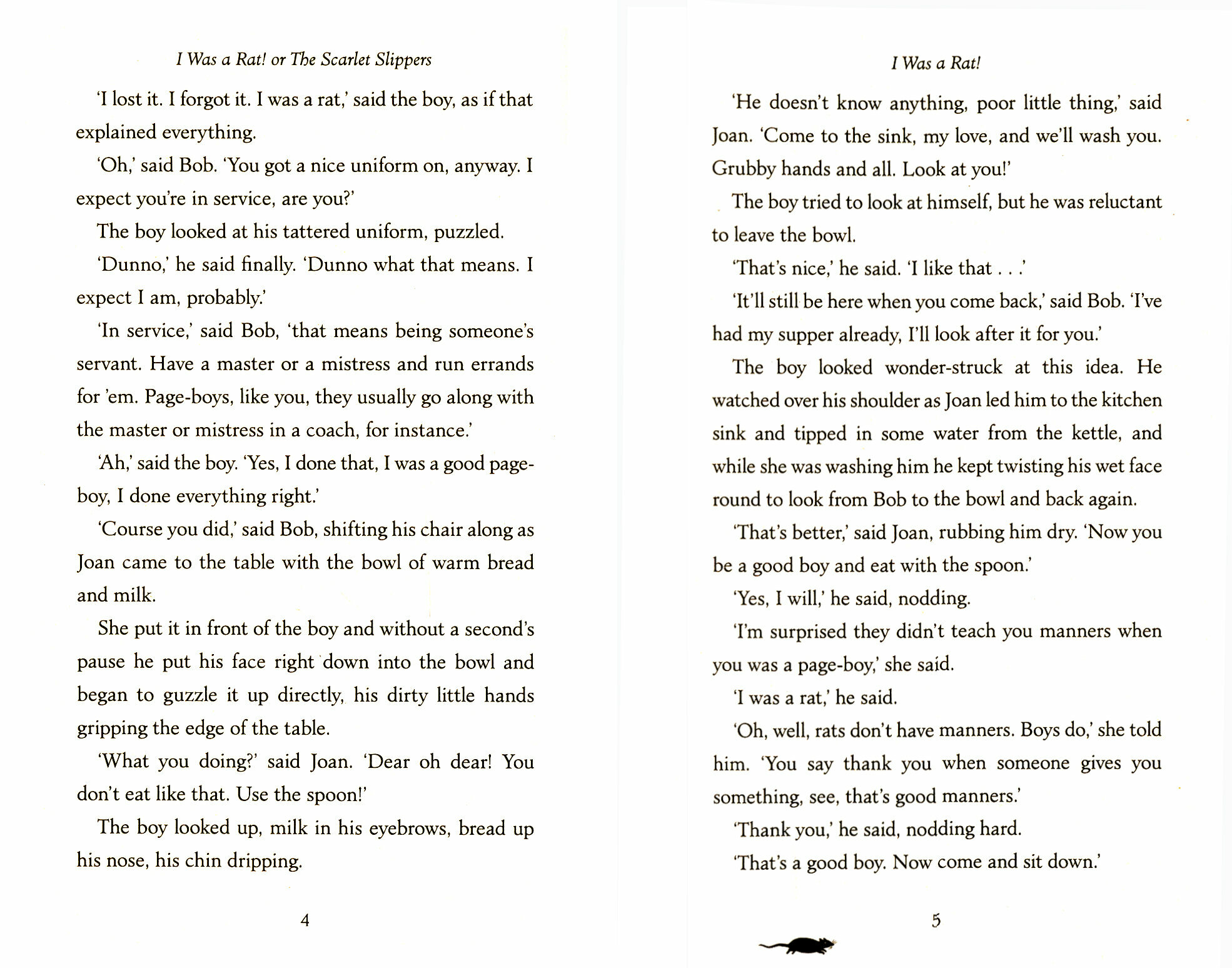 I was a Rat! Roger insists, and insists . . . In fact, when Bob the cobbler and his washerwoman wife, Joan, find the young boy abandoned on their doorstep, these are the only words he says. And he does have ratty behaviour, it's true.