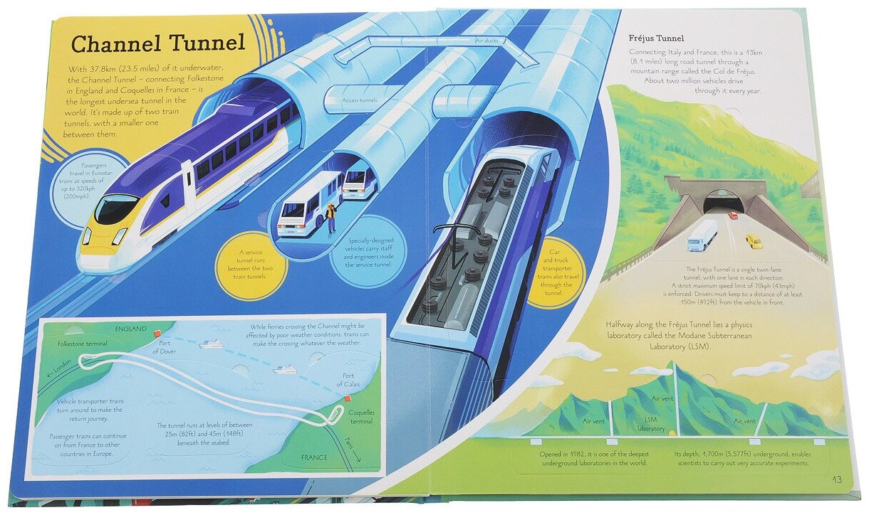 Lift the flaps to reveal the mechanics and engineering of amazing bridges, towers and tunnels including the Channel Tunnel, the Burj Khalifa, Golden Gate Bridge and more. With detailed illustrations and links to websites to see views from the top of the Shard and CN tower, travel through tunnels and see the enormous machines used to create them.