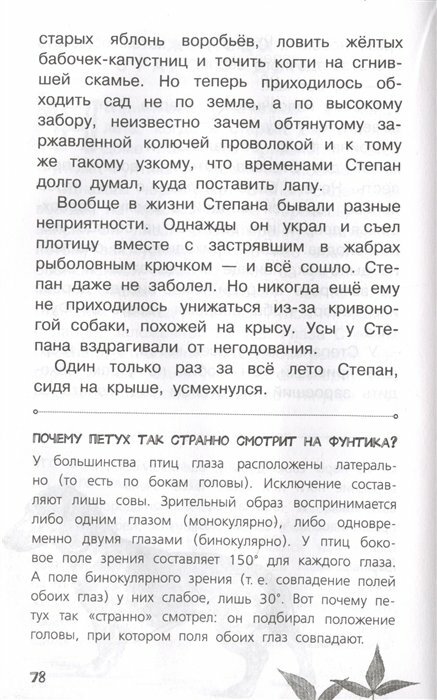 Как здорово, что придумали вот такую серию с вопросами и ответами для почемучек. Можно сразу разобраться, что означает непонятное слово. Ведь иногда забываешь вернуться к незнакомому и сложному, чтобы выяснить, понять. А здесь очень удобно расположен материал. Как мини-статьи из энциклопедии, художественно обработанные. В самом тексте слова, которые поясняются ниже, выделены жирным шрифтом. Можно просто по ним прогуляться и почитать. Но я советую это делать по ходу повествования. На эти объяснения отведено почти половины страницы или треть. Очень часто с чёрно-белыми иллюстрациями. Объяснялки на самые разные темы из окружающего мира. Поэтому детям будет не только интересно, но и познавательно. Например, они узнают: Почему созвездия движутся по небу? Сколько живёт сверчок? Что такое ряска? и многое другое. Книга в переплёте. Бумага чуть сероватого цвета, просвечивает. Текст крупный, дети начальной школы сами смогут прочитать книгу.