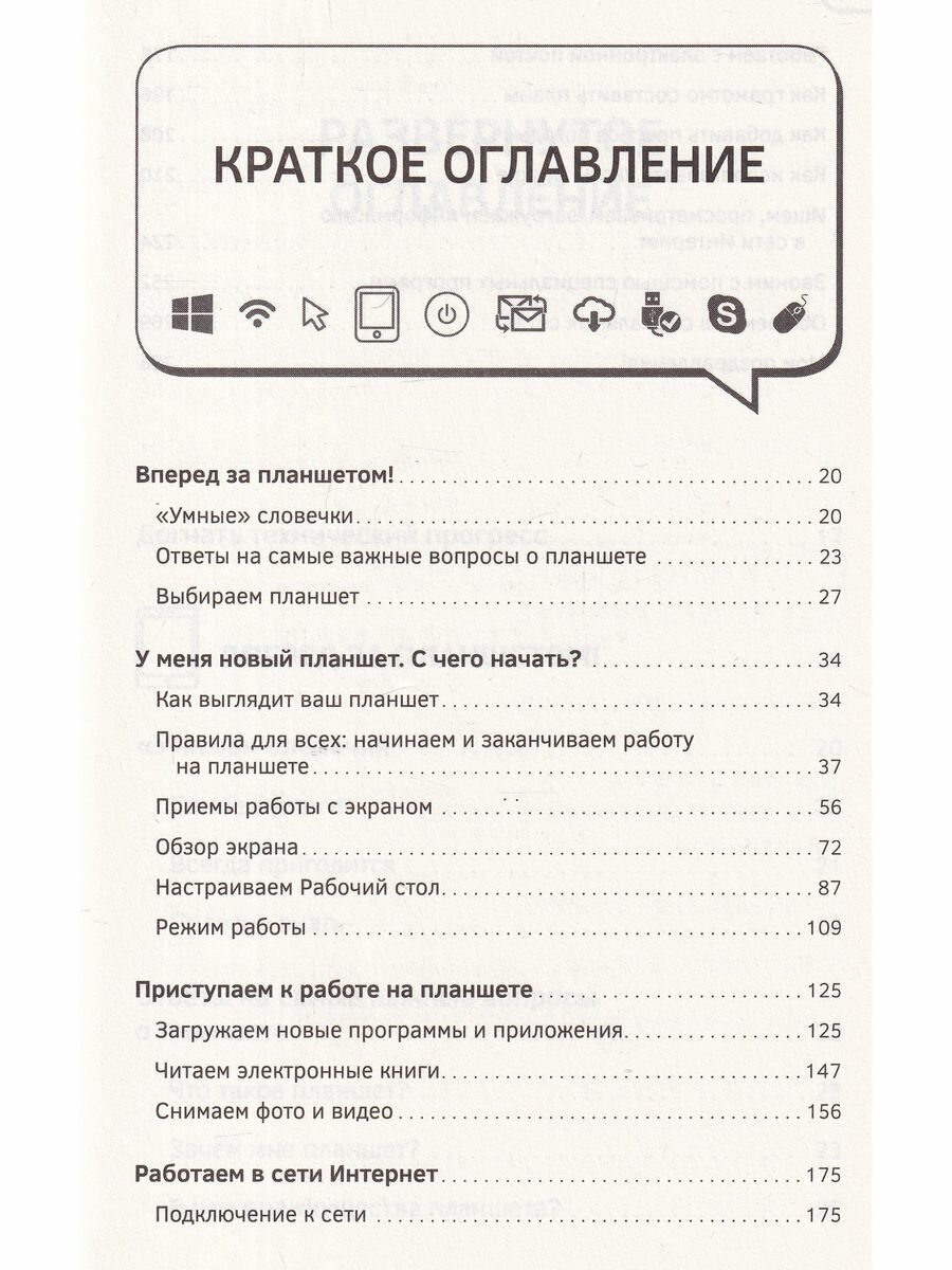 Простые и подробные инструкции быстро научат вас включать и выключать планшет, настроить его под себя. Вы сможете смотреть любимые сериалы, писать сообщения, делать фото и отправлять их родным и друзьям, искать информацию в сети Интернет, бесплатно звонить по всему миру и совершать покупки в интернет-магазинах. И все это — без сложных слов и ненужных подробностей!
