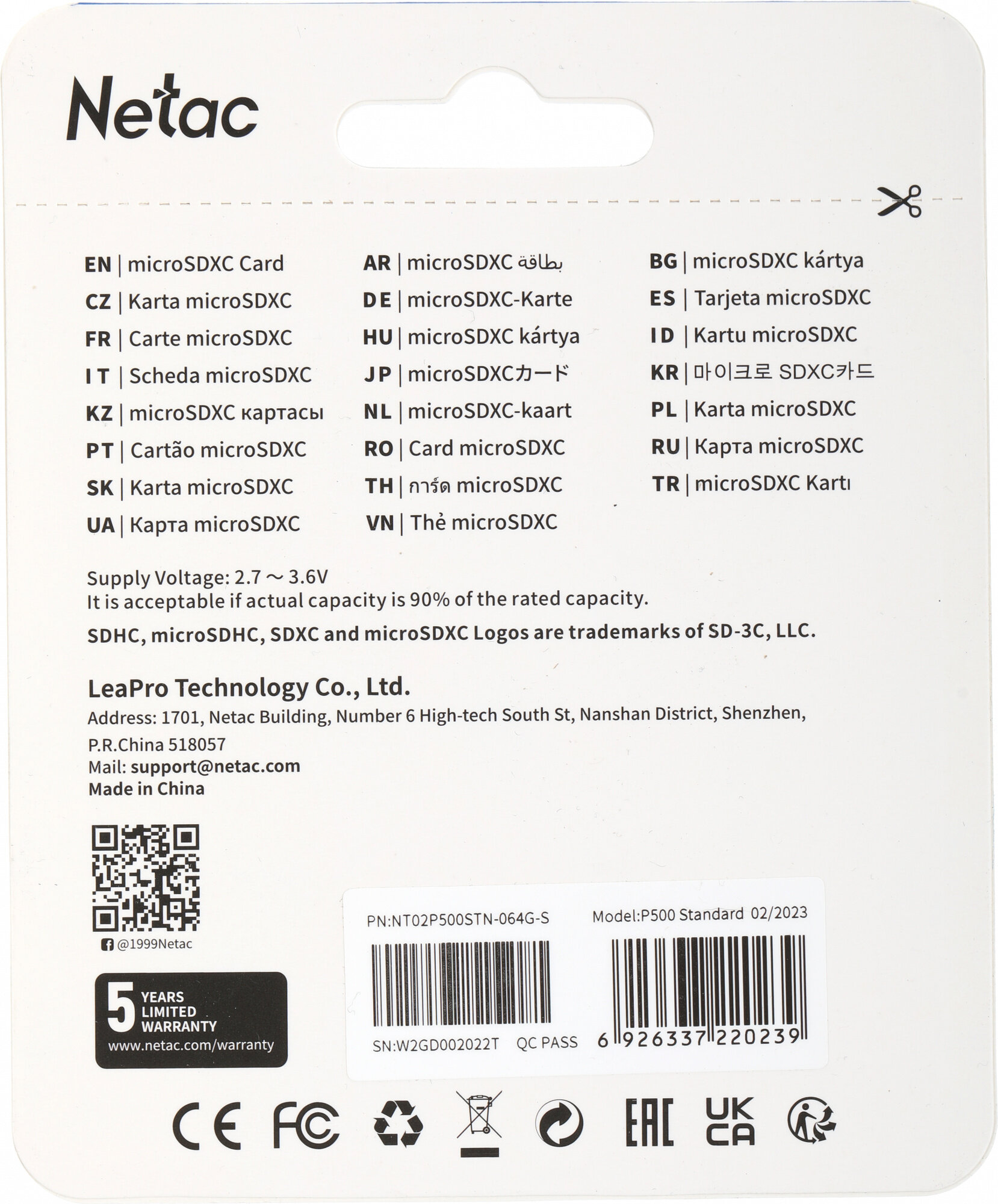 | Карта памяти microSD Netac P500 Standard поможет расширить хранилище вашего смартфона, планшета, MP3-плеера, электронной книги. Объём 64 Гб, что позволит держать при себе значительное количество различных файлов | фото, видео, текстовых документов и прочего. |