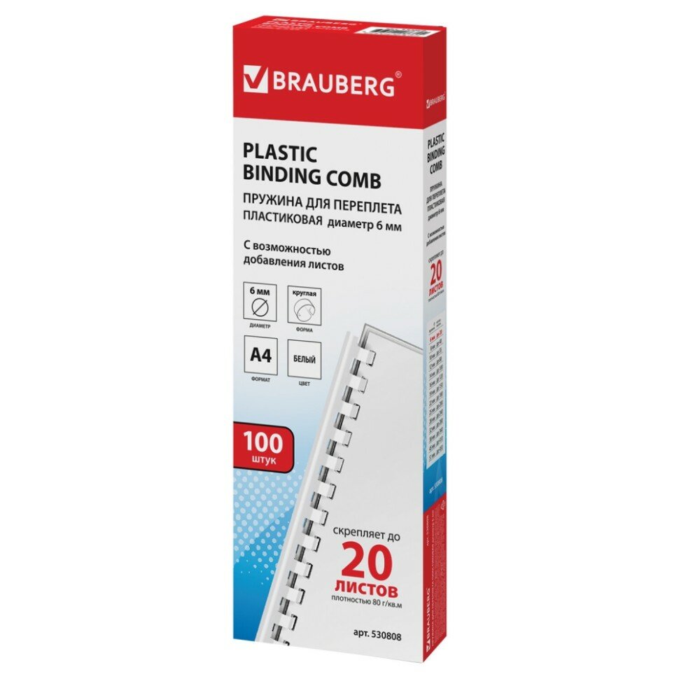 Пластиковая пружина для переплета документов BRAUBERG совместима с большинством переплетных машин. Преимуществом является возможность быстро извлечь документы из переплета или добавить листы в уже переплетенный документ.