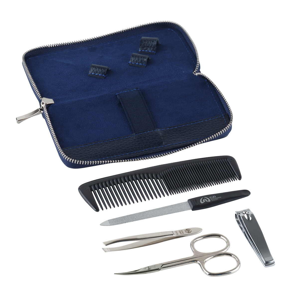 Мужской дорожный маникюрный набор GD из 5 предметов. Инструменты: ножницы для ногтей, пилка металлическая 12,5 см, пинцет скошенный, книпсер для ногтей 6 см, расческа.