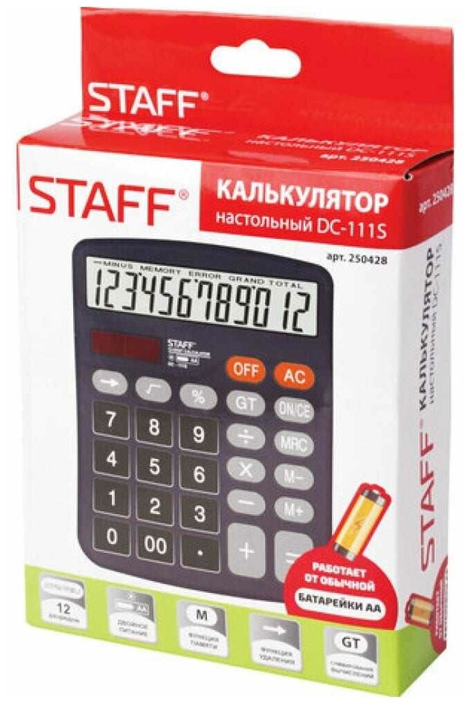Сервис сравнения цен СкидкаГИД предлагает сравнить цены на товар «Компактный настольный калькулятор Staff Калькулятор настольный компактный Plus DC-111S 12 разрядов»
