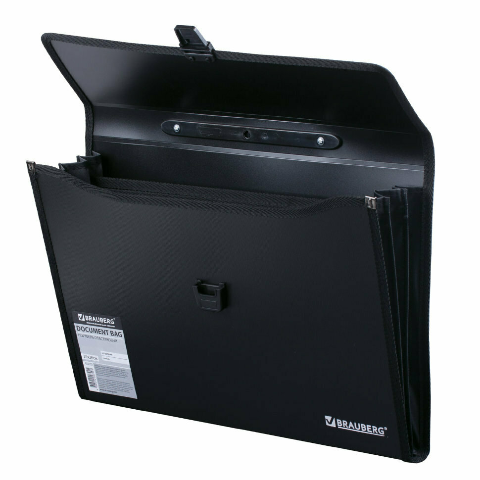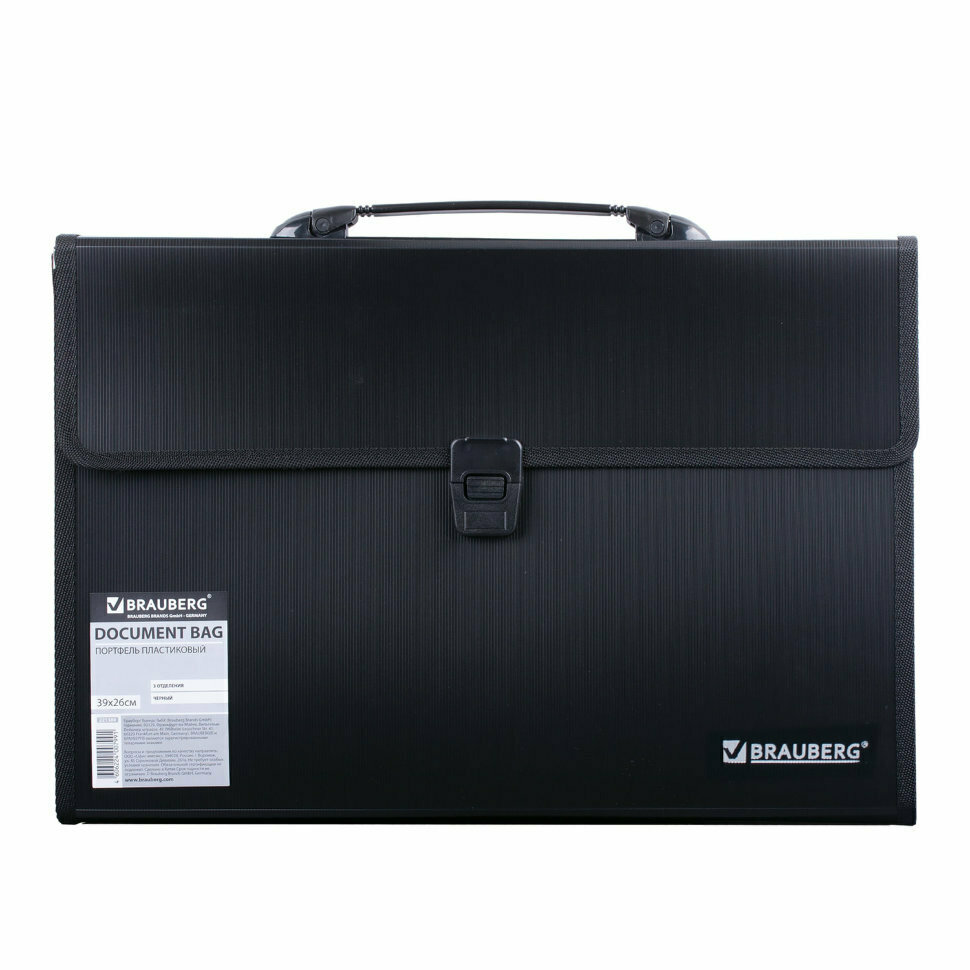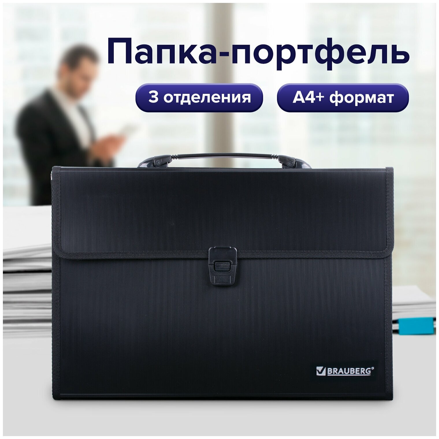 Папка-портфель BRAUBERG пластик черная (221389) Папка-портфель А4+ 3 отделения