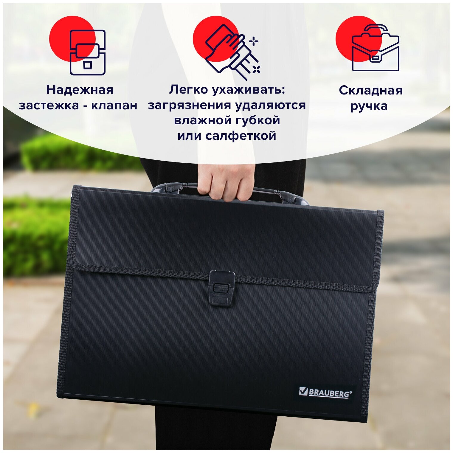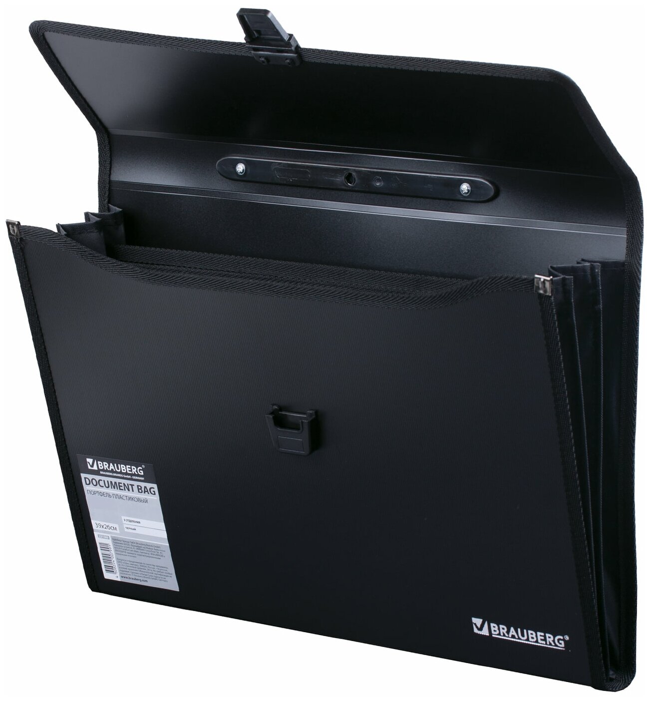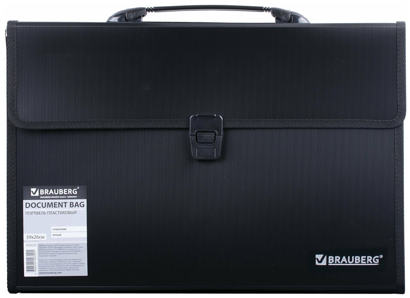 Папка-портфель BRAUBERG пластик черная (221389) Папка-портфель А4+ 3 отделения