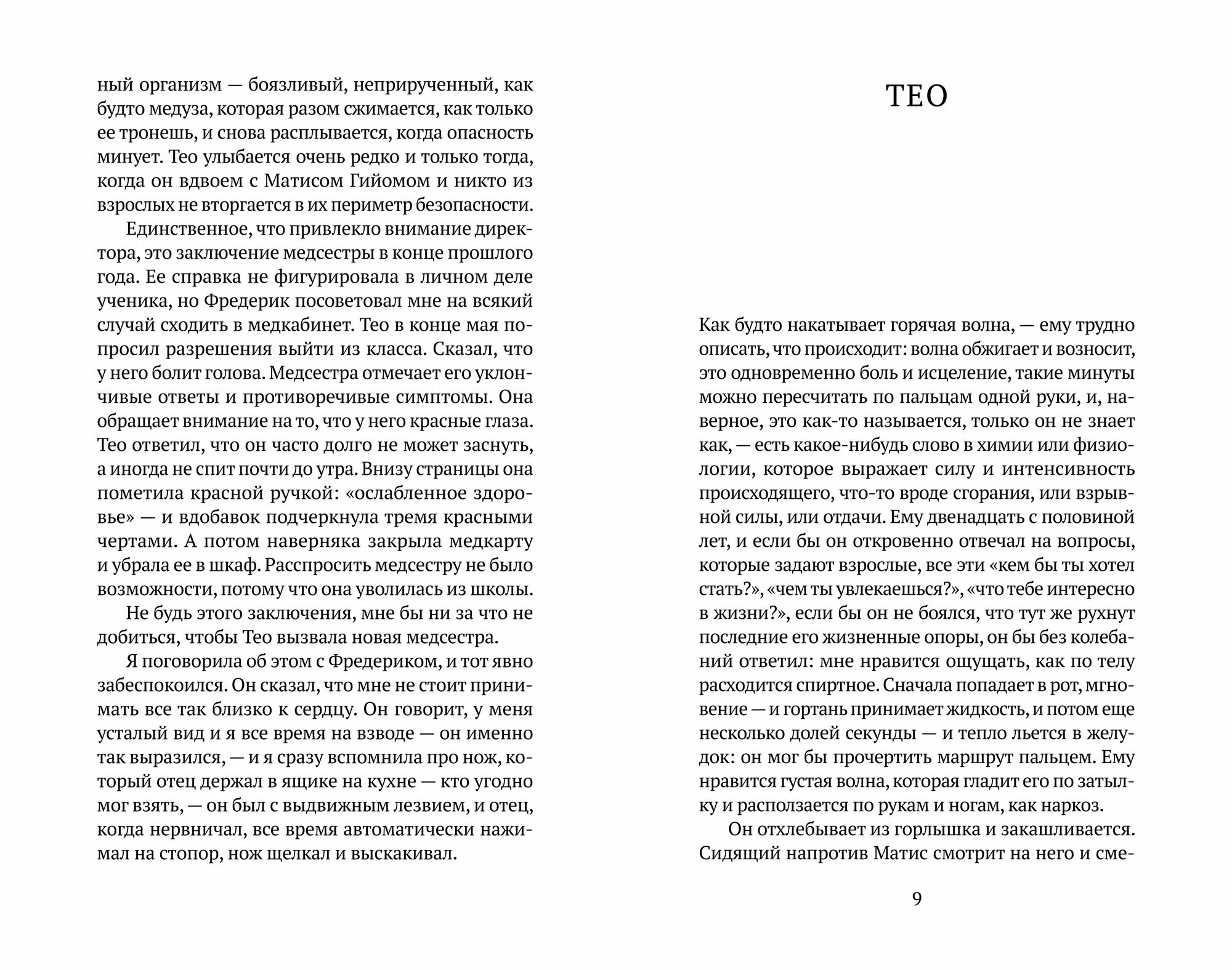 Двенадцатилетний мальчик Тео тяжело переживает расставание родителей. Учительница Элен обеспокоена уныньем и отчужденностью мальчика, но в отличие от его матери пытается разобраться, что с ним произошло. Его друг Матиас старается поддержать Тео и быть рядом, даже идет на обман матери, чья история тоже будет рассказана автором.