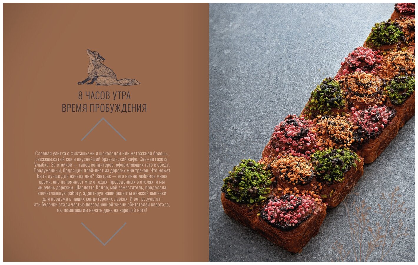 Приобретя бесценный опыт и мастерство, Ян принял решение открыть собственные кондитерские. В это же время вышла в свет его первая книга. Современная и элегантная, она отражает стиль и визуальную идентичность парижских кондитерских Яна Куврёра, включая и его талисман - лису, ставшую визитной карточкой мастера.