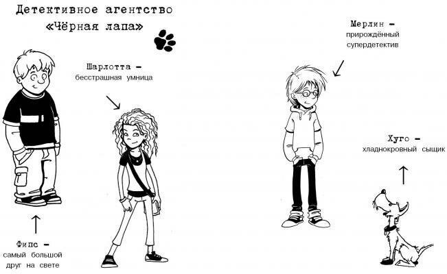 Никогда не знаешь, что можно найти в мусорном баке! Однажды Мерлин обнаружил там симпатичного белого пёсика с чёрной лапой. Так у Мерлина появился Хуго, который оказался не только забавным псом, но и замечательным сыщиком. Именно он помог Мерлину и его друзьям, Фипсу и Шарлотте, выследить и обезвредить коварного мошенника. Благодаря удачному раскрытию преступления, друзья решили создать своё детективное агентство, которое получило название "Чёрная лапа".
