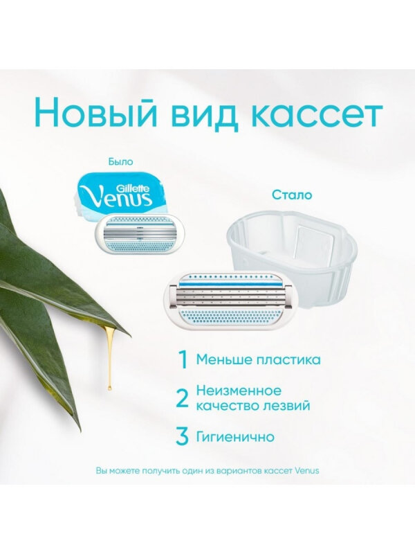 Сменные кассеты для женской бритвы Venus Smooth, 6 шт. Благодаря трем повторяющим изгибы тела лезвиям и разглаживающим кожу защитным подушечкам вокруг лезвий, бритва обеспечивает гладкое и чистое бритье. Преимущества: 3 острых лезвия обеспечивают более гладкое и чистое бритье одним движением. (По сравнению с Simply Venus 2); Голубая полоска-индикатор, меняя цвет, показывает, когда пора менять лезвия; Благодаря смазывающей полоске с алое бритва легко скользит по коже и обеспечивает комфортное бритье; Закругленная плавающая головка плотно прилегает к коже и позволяет с легкостью сбривать волоски в труднодоступных местах; Мягкое бритье с защитными эластомерными подушечками вокруг лезвий для дополнительного комфорта. Любая сменная кассета Venus подходит к любой бритвенной ручке Venus, кроме Simply Venus.
