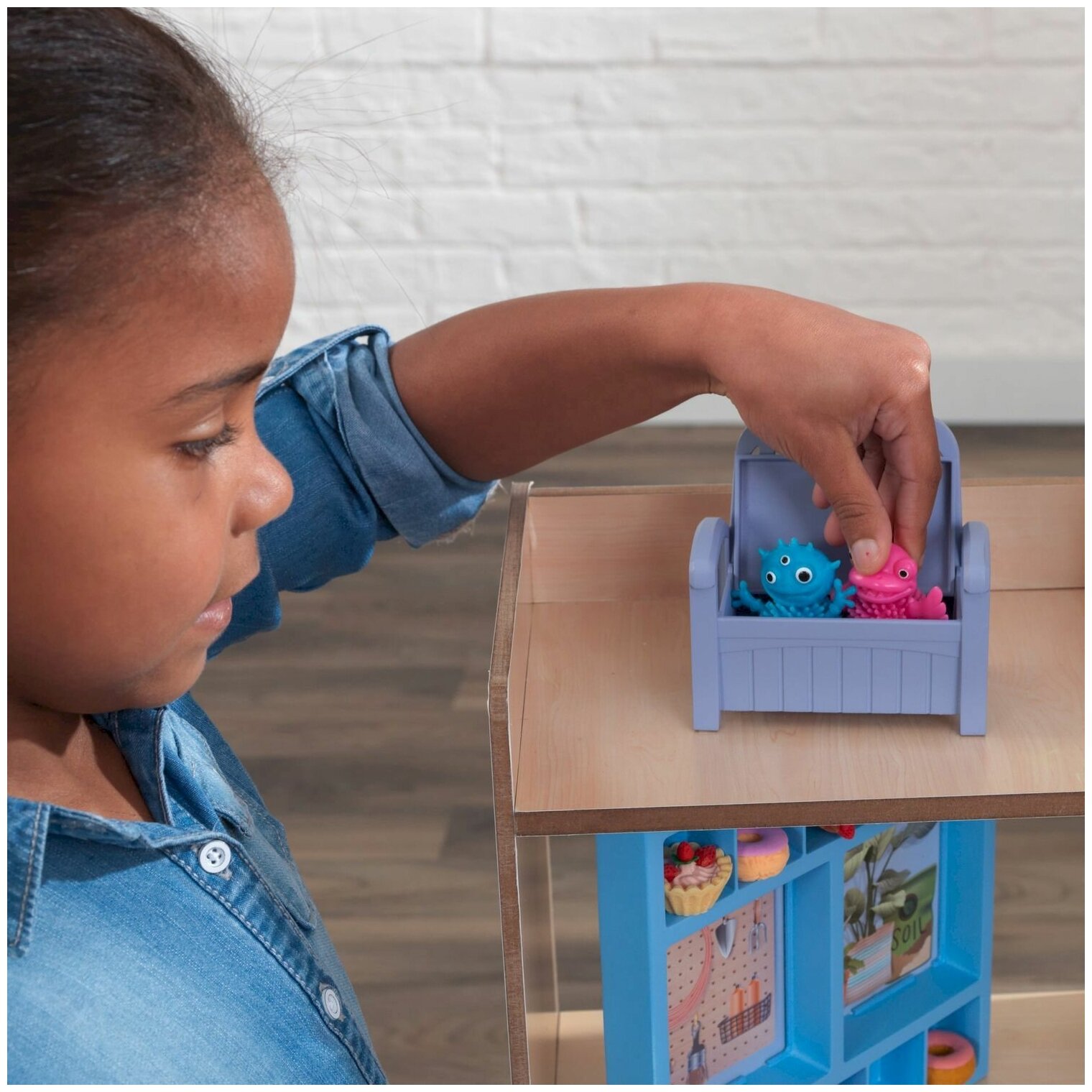• Рекомендуется для мальчиков и девочек. • Возрастные рекомендации: от 3 лет. • Дизайн на 360 позволяет одновременно играть нескольким детям. Никаких ссор из-за места. • Для увлекательной игры подойдет кукла высотой не более 12 сантиметров, места в доме хватит для целой семьи кукол. • Откройте для себя дополнительное пространство для хранения аксессуаров на диване, кровати и стуле. • В кукольном домике удачно сочетаются наклонная крыша, выполнена в стиле ретро и модный архитектурный дизайн. На крыше находится патио. • В набор входят 11 предметов мебели в стиле ретро: диван, кровать и кресле с системами хранения. Просто поднимите или сдвиньте верхнюю часть, чтобы найти место для самых заветных сокровищ. Духовка также открывается, чтобы дети могли притвориться, что готовят для своих кукол любимые блюда. Ванна, стол и 2 стула для столовой, 3 больших стеллажа для хранения разных вещей. • Чтобы получить более быстрые и простые инструкции по сборке, загрузите бесплатное приложение BILT из Apple App Store или Google Play. • Примечание: Куклы в комплект не входят и приобретаются отдельно!