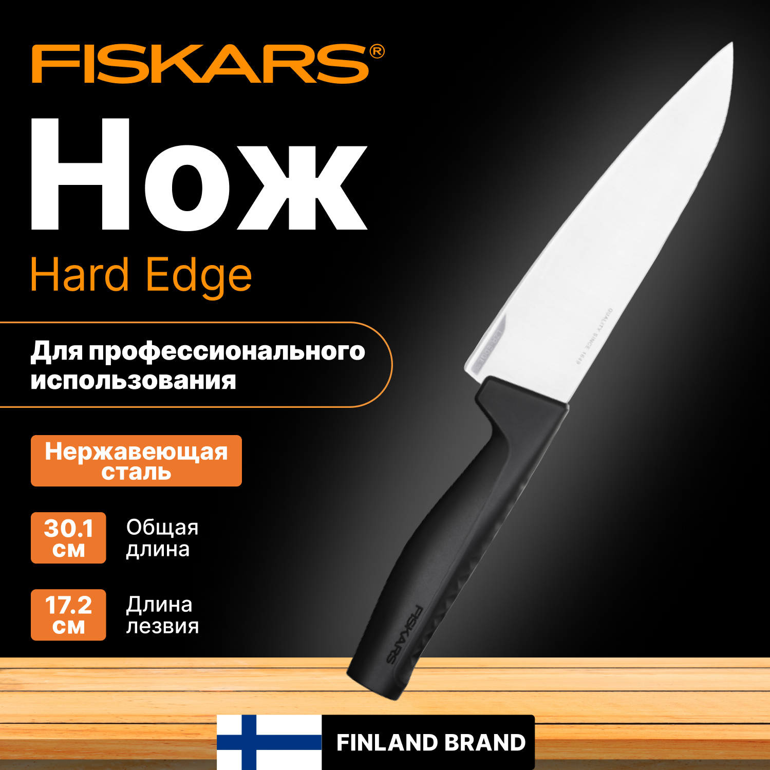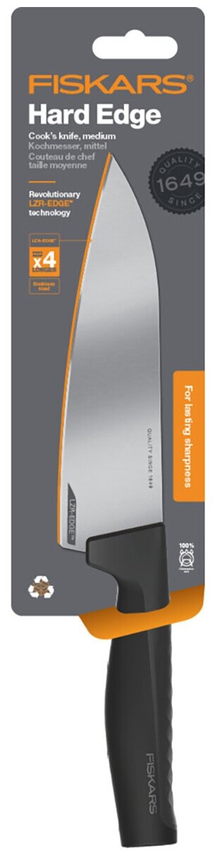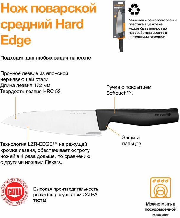 Сервис сравнения цен СкидкаГИД предлагает сравнить цены на товар «Нож кухонный Fiskars Hard Edge (1051748) стальной разделочный лезв.172мм прямая заточка черный»