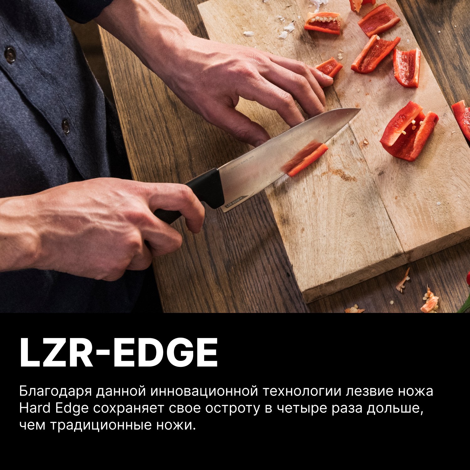 Ножи Hard Edge разработаны для того, чтобы обеспечить долговечную остроту лезвий для любых задач на кухне. Филейный нож Hard Edge с длинным и гибким лезвием, идеально подходит для обработки рыбы. Лезвия ножей изготовлены из нержавеющей стали с революционной технологией LZR-EDGE на режущей кромке.