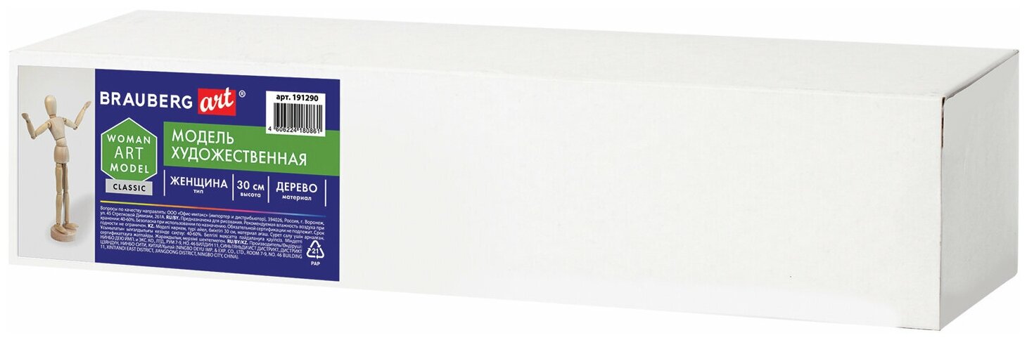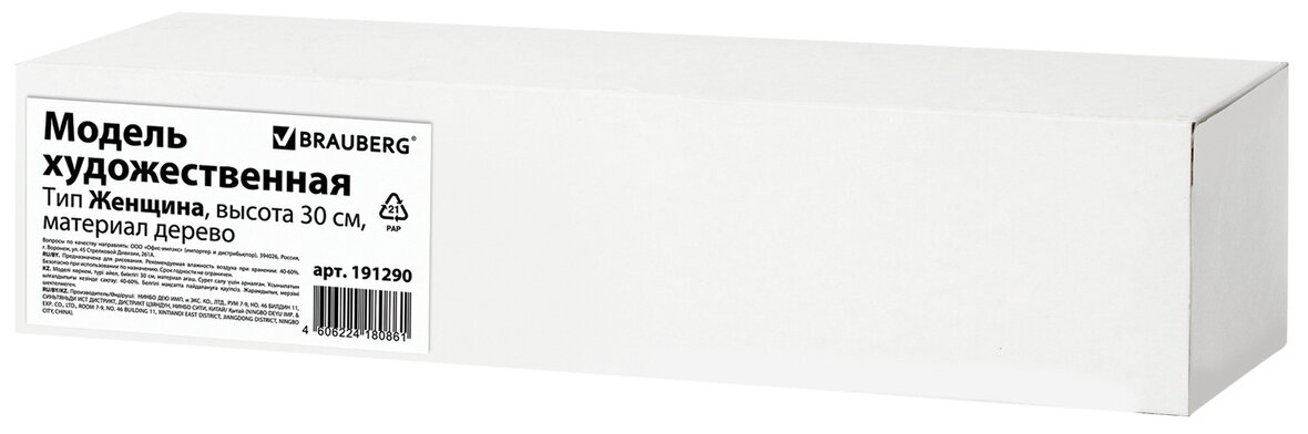 Манекен человека художественный BRAUBERG ART CLASSIC женский дерево высота 30 см Art Classic Манекен человека художественный женский 30 см