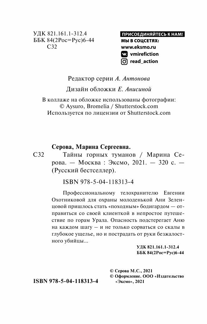 Книга: Тайны горных туманов (Марина Серова); Эксмо, 2021