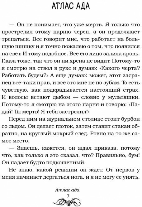 Приобрела книгу, увидев название и соотнеся с одноимённым понравившимся арт-хаусным фильмом. Оказалось, что не ошиблась. Баллингруд создаёт свой собственный ад, не похожий ни на что прежде прочитанное. Хотя это и сборник, но многие персонажи просачиваются на соседние страницы рассказов и появляются там едва уловимыми путниками, что может порадовать внимательного читателя. Сюжетные линии наполнены разношерстной нечистью: жрецами-каннибалами, подпольными вампирами, адскими путешественниками, сетевыми извергами, мертвецами-соседями, природным чудовищным апокалипсисом. Особенно понравились рассказы: "Атлас ада", "Стол мясника", "Расщелина", "Выгорание". А в последнем рассказе я до конца верила в другой исход. Кому бы я посоветовала приобрести этот сборник? Тем, кому хочется попробовать открыть для себя нового Принца ужасов