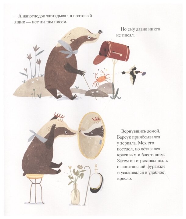 Очень душевная новинка от издательства МИФ! Таким уютом и духом приключений окутана история. Старый Барсук был отважным капитаном, но теперь можно сказать он на пенсии, ведет размеренную жизнь, все отлажено у него и спокойно проводит он время на своем островке. Однажды найдя маленького зверька, тот внес в его спокойствие настоящий хаос. И дух приключений вновь поглотил его. Искать и путешествовать , изучать и видеть новое никогда не поздно. И не важно сколько тебе лет! Иллюстрации очень уютные, теплые и такие живые!