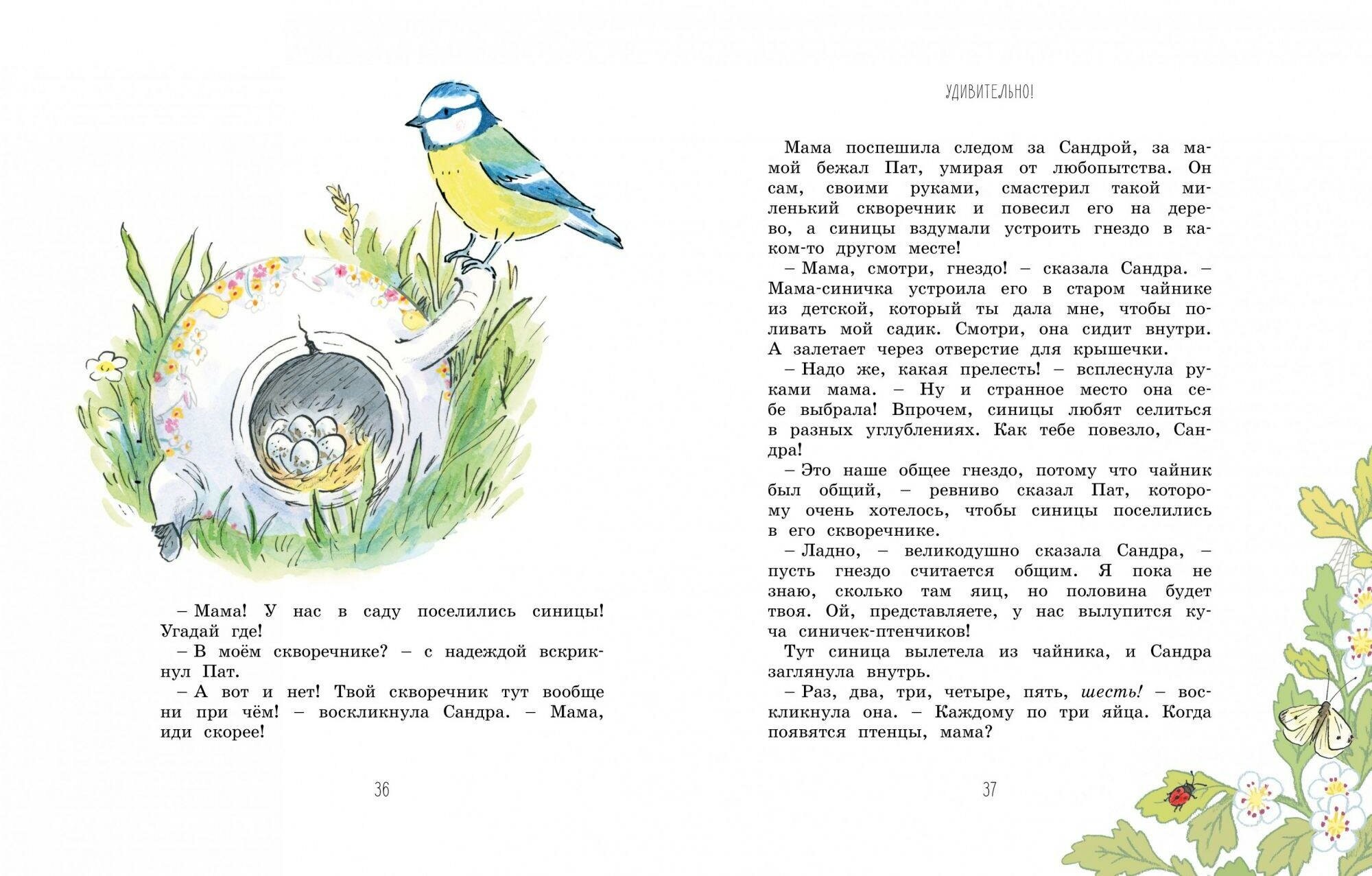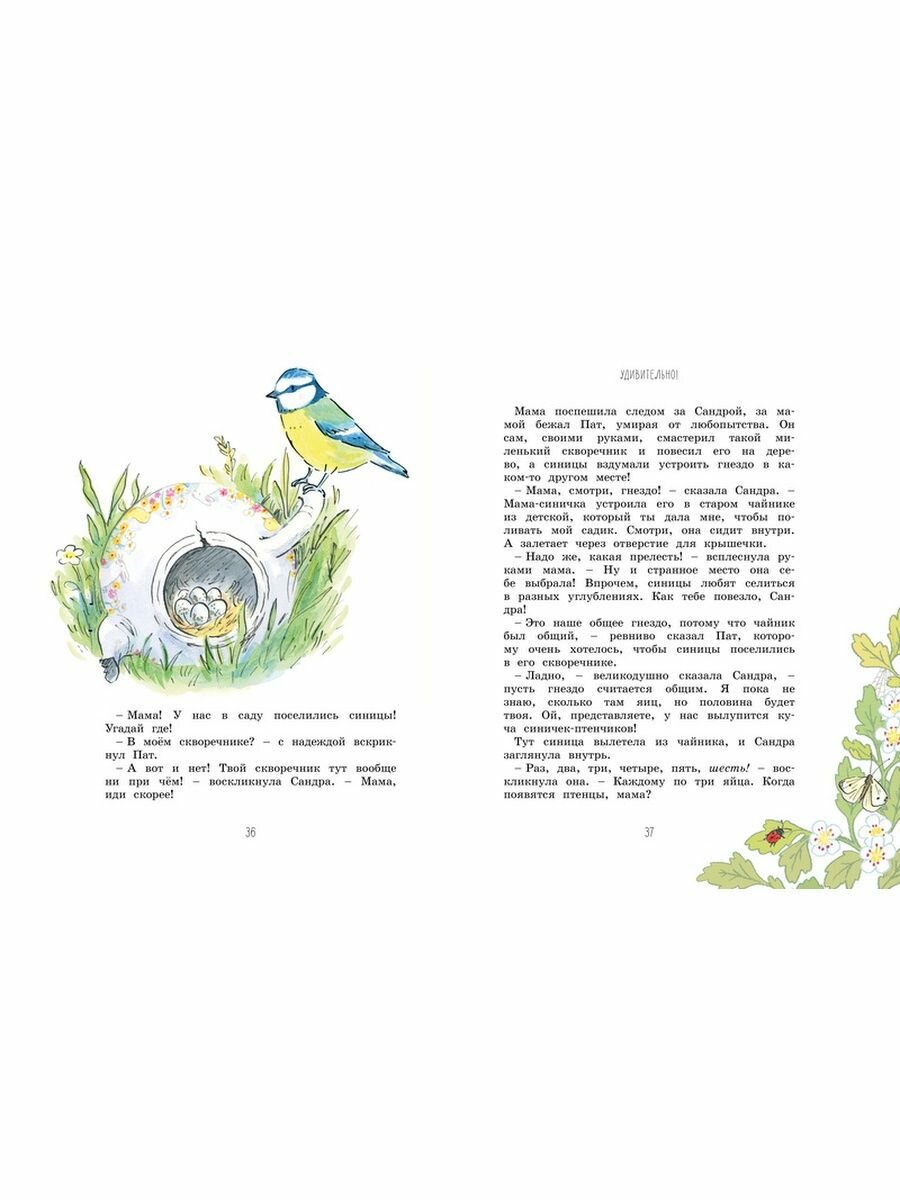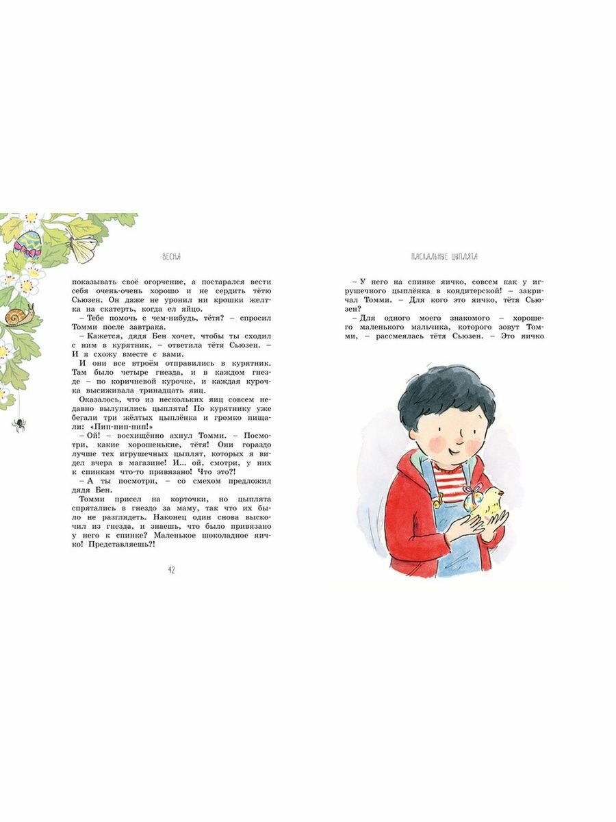 Прекрасная детская классика. После прочтения именно этой книги мы стали собирать все, что написала Энид Блайтон. Великолепный слог, богатый язык, никакого сленга, красивейшие описания и динамичный сюжет. Книга поделена на 4 части - 4 сезона. В каждом сезоне много тематических рассказов. Автор пишет о прелестях сельской жизни, о природе, в рассказах можно встретить реальные жизненные ситуации, а на следующей страницы появляются эльфы и феи. Вот такой микс правды и выдумки создает волшебный сказочный уют. Оформление выше всех похвал, иллюстрации великолепные, бумага белая и плотная. Шикарная подарочная книга!