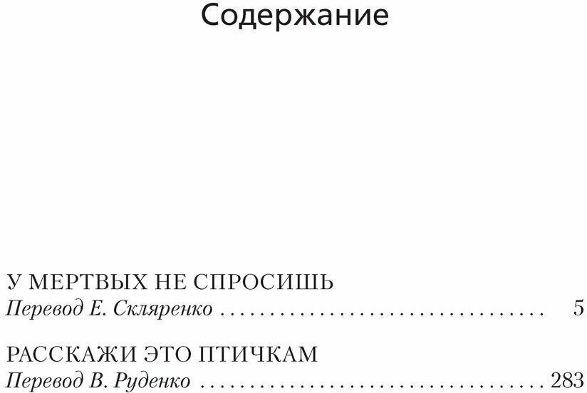 Произведения Джеймса Хэдли Чейза и по прошествии лет не утратили магической увлекательности. Виртуоз лихо закрученного сюжета и классик детективного жанра, он создал порядка 90 романов, больше половины из которых было экранизировано. Вечная тема опостылевшего супруга и неверной жены, которая вместе со свободой желает получить и хороший денежный приз, для Чейза неистощимый источник диковинных историй. Эту тему он искусно обыгрывает и в романах "У мертвых не спросишь" и "Расскажи это птичкам", представленных в настоящем сборнике. Мастер хитроумных и неожиданных развязок, Чейз легко вводит в заблуждение своих самых прозорливых читателей, которые пытаются предугадать ход сюжета.