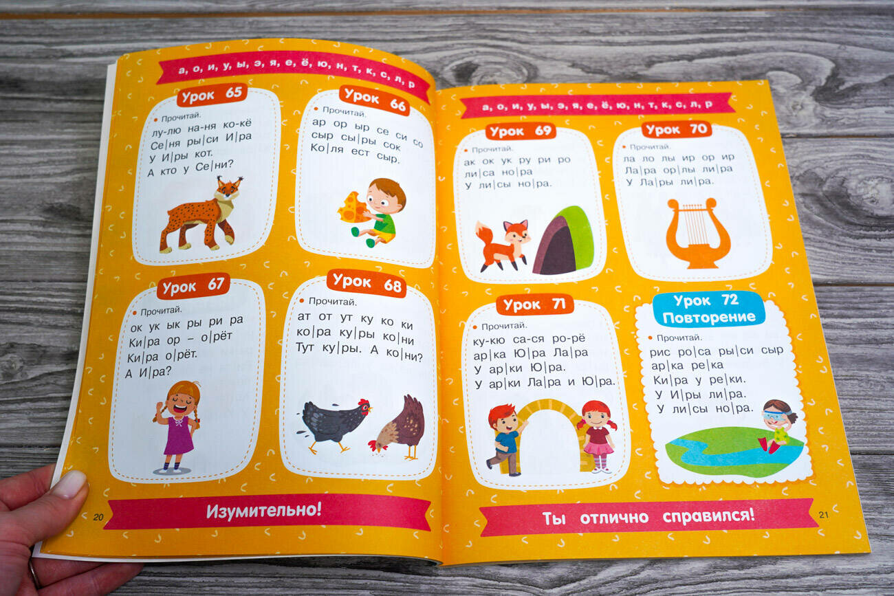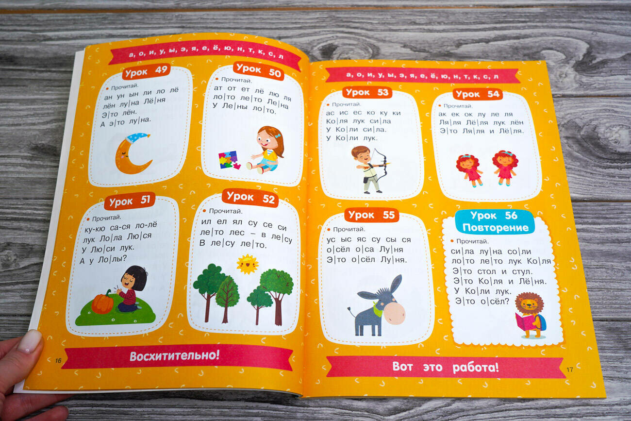 Моему сыну данная книга понравилась больше, чем буквари различных авторов. В чем причина я могу только предполагать. Но интерес и желание учиться читать пробудила в ребенке именно эта книга. Читаем ежедневно по паре страниц, стараясь не перегружаться, но результат уже заметен.