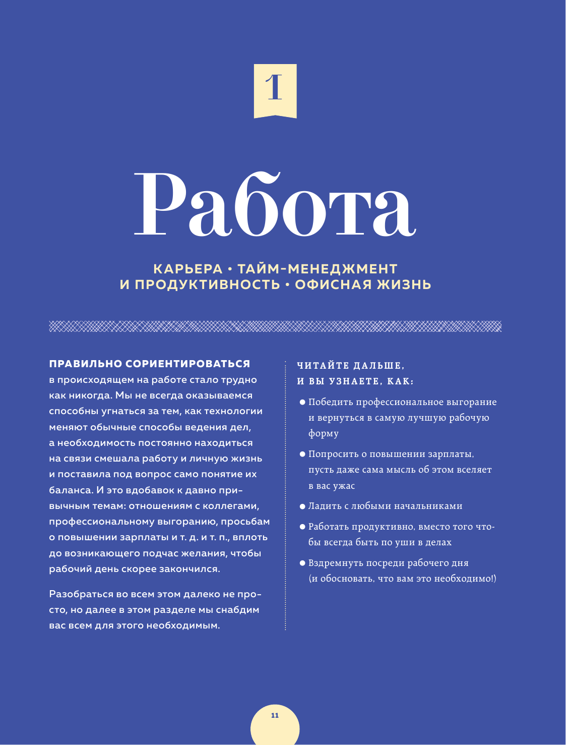 Когда находишься на пороге взрослой жизни, перед тобой встает множество трудностей и вопросов, о которых не расскажут в университете: как добиться успехов на работе, не бояться просить повышения, научиться договариваться, распоряжаться личным бюджетом, сделать свой дом уютным без особых трат, справляться со стрессом и предотвратить выгорание?