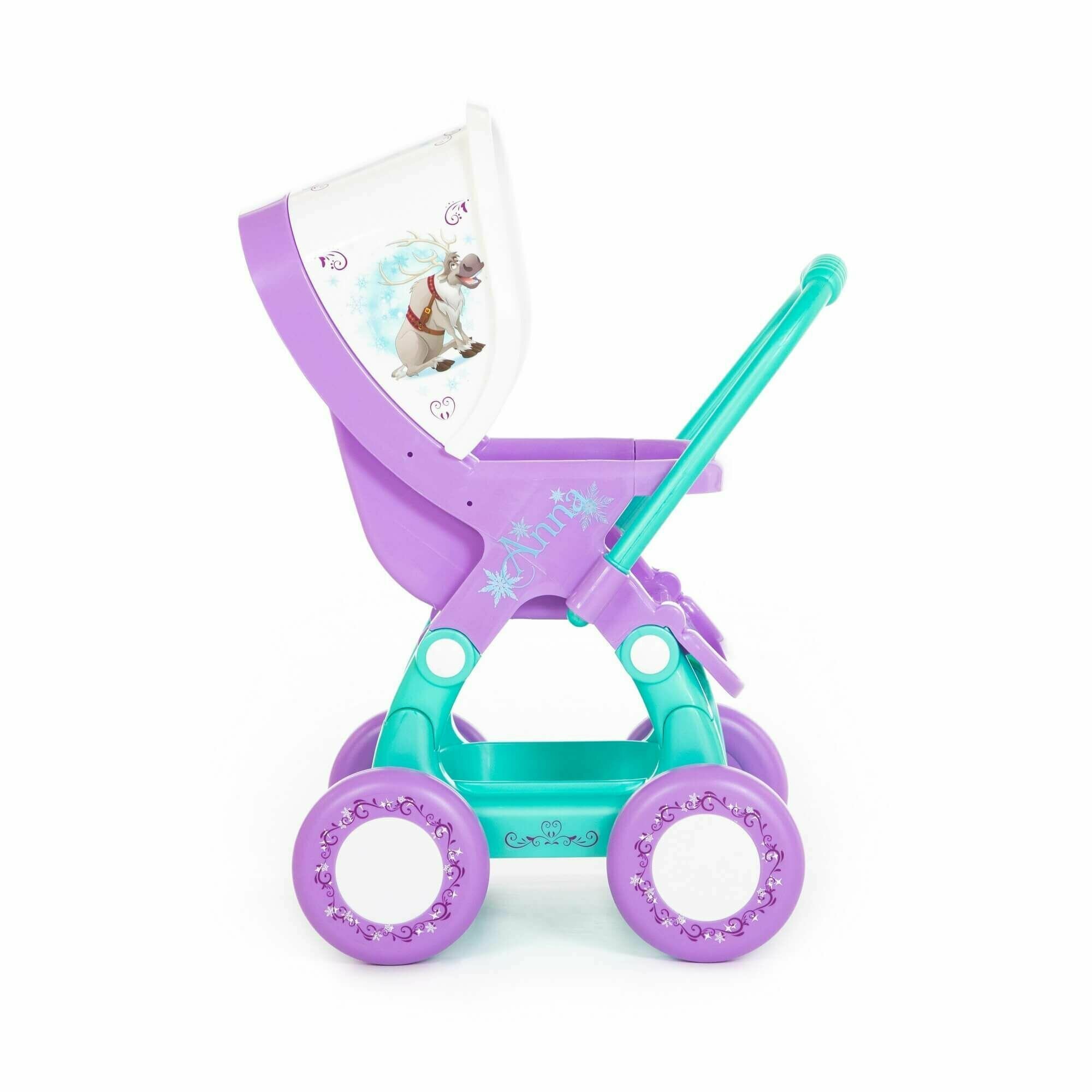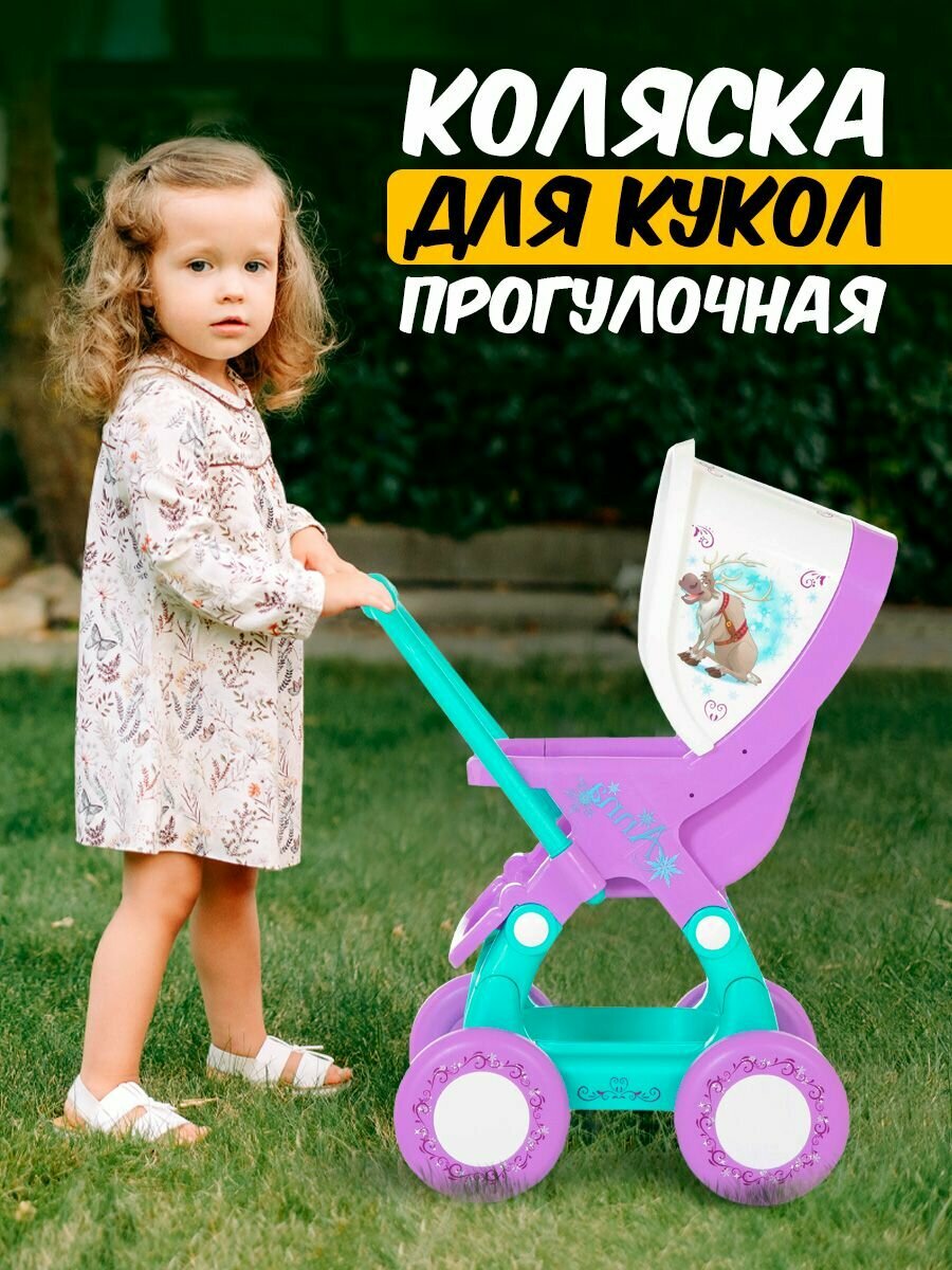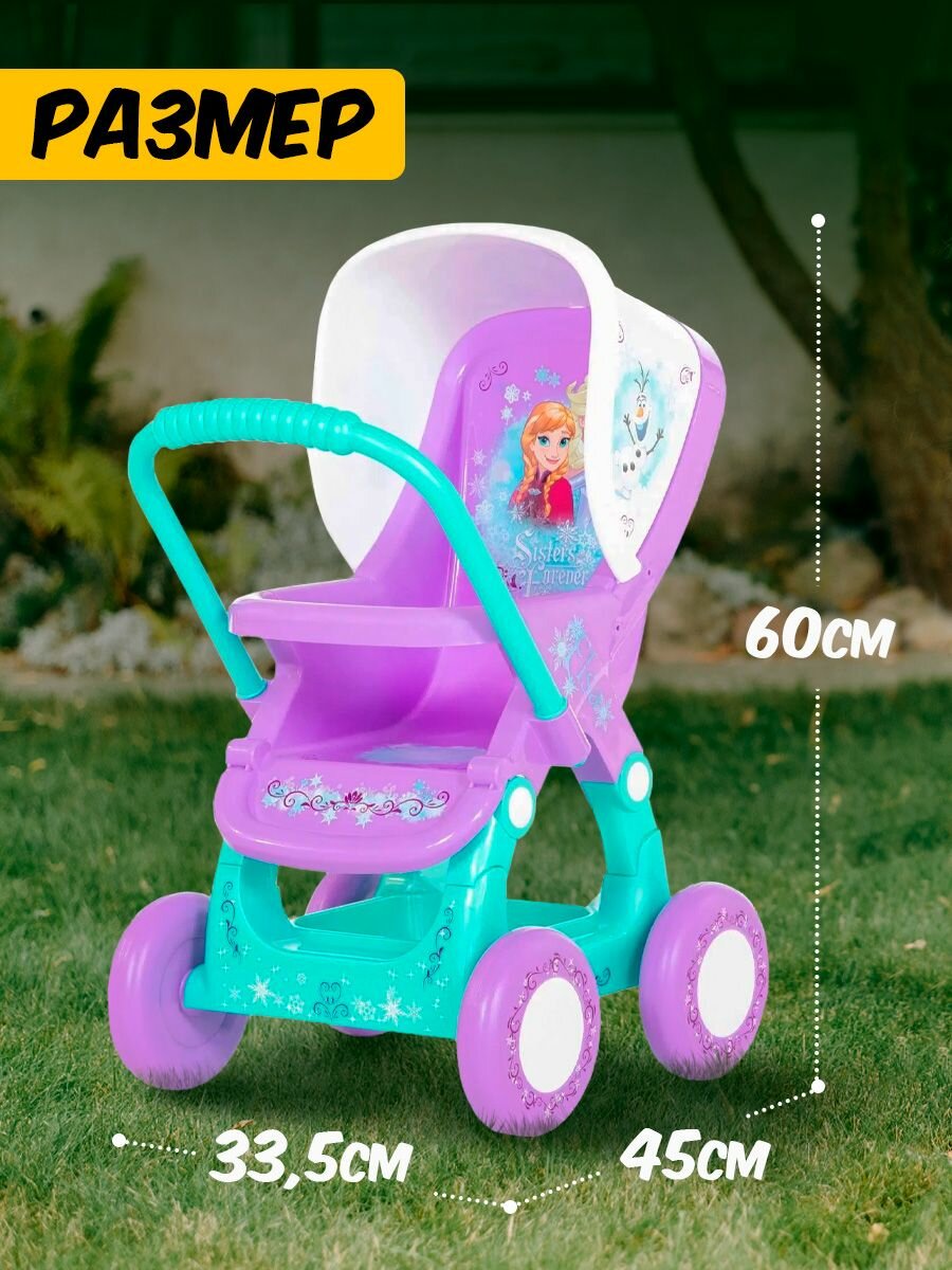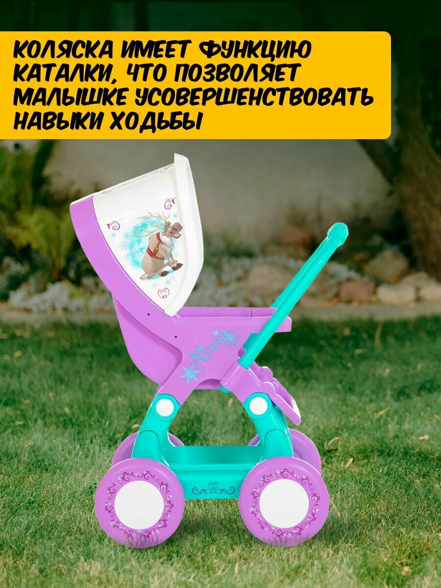 Замечательная коляска порадует Вашу принцессу. Она выполнена по мотивам популярного диснеевского мультфильма «». В модели преобладают холодные тона, декорирована игрушка изображением героев мультфильма и полностью выполнена из прочного пластика.