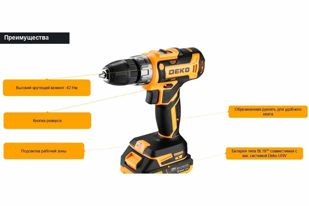 Обзор шуроповерта Deko DKCD20FU-Li